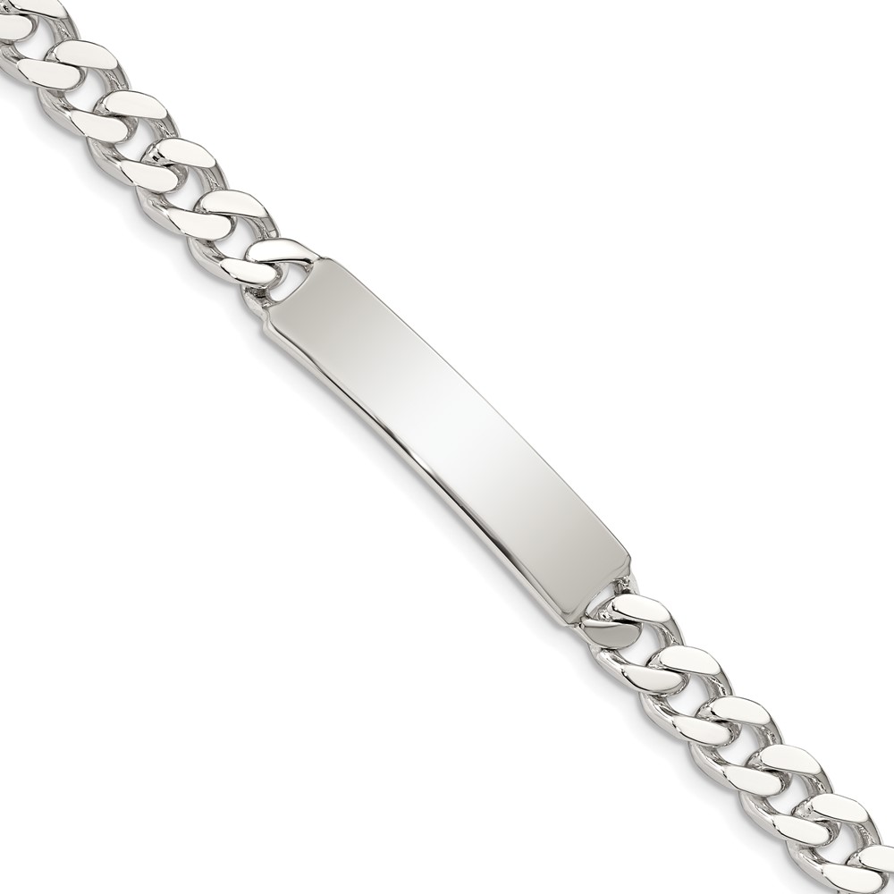 Sterling Silver Polished Engraveable Curb Link ID Bracelet