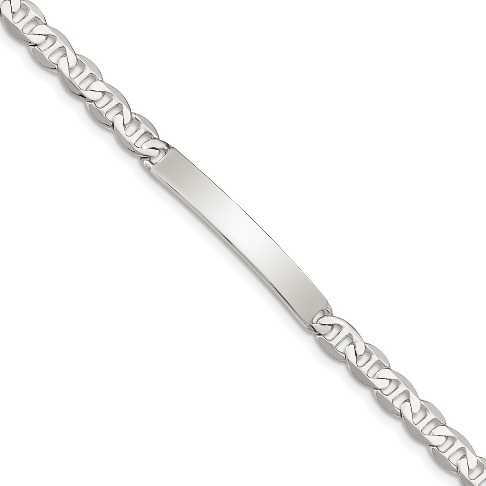 Sterling Silver Polished Engraveable Anchor Link ID Bracelet
