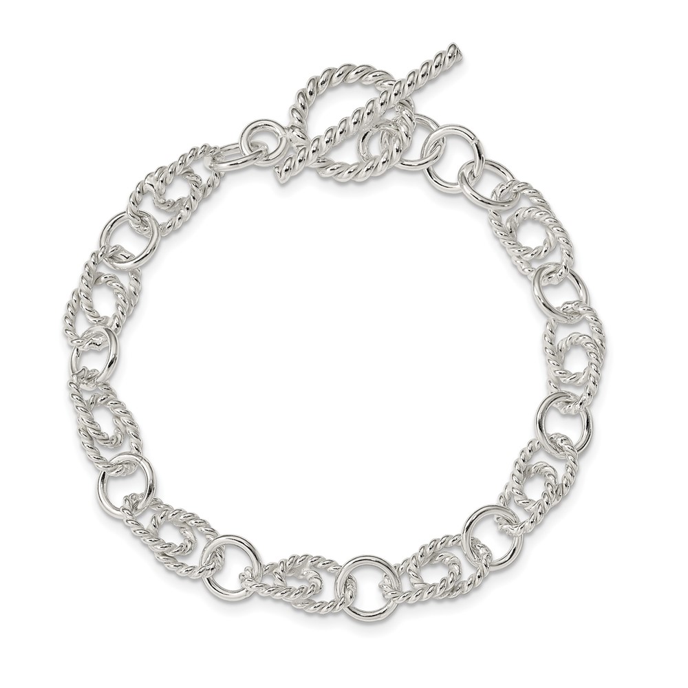 14k Two-tone Polished and Twisted 6.5mm Lightweight Fancy Rope Link 7 inch Bracelet