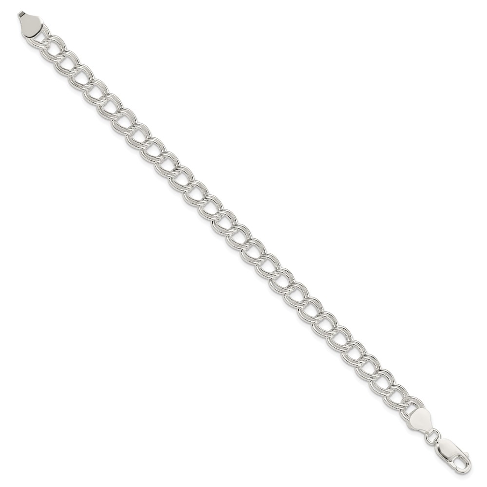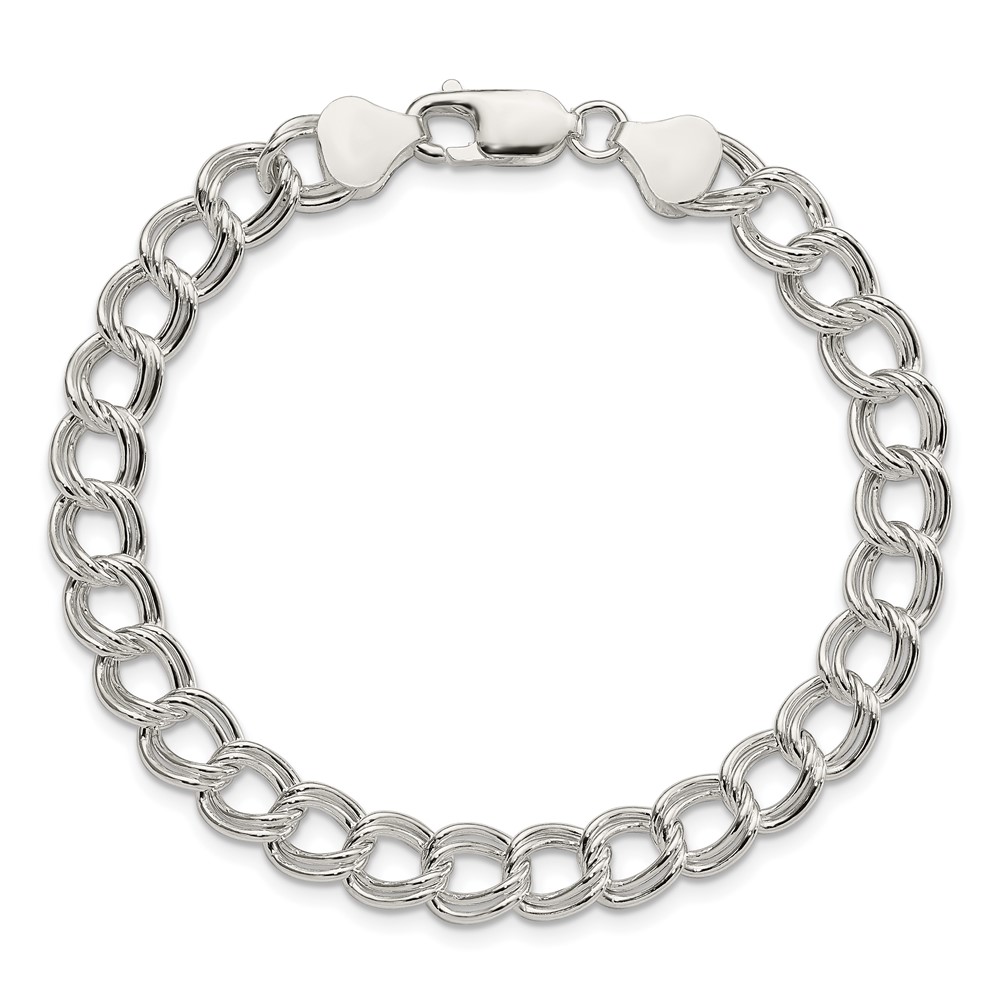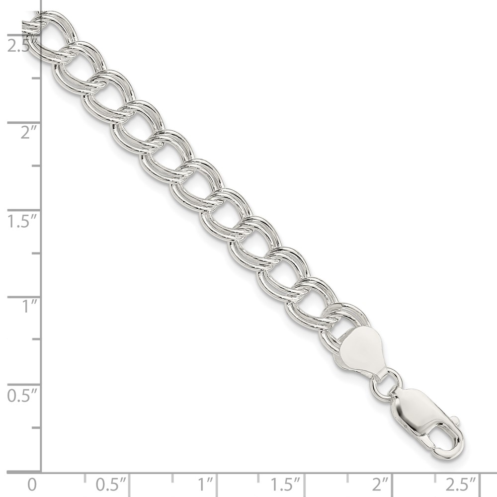 Sterling Silver 7.5mm Semi-Solid Double Link Charm Bracelet