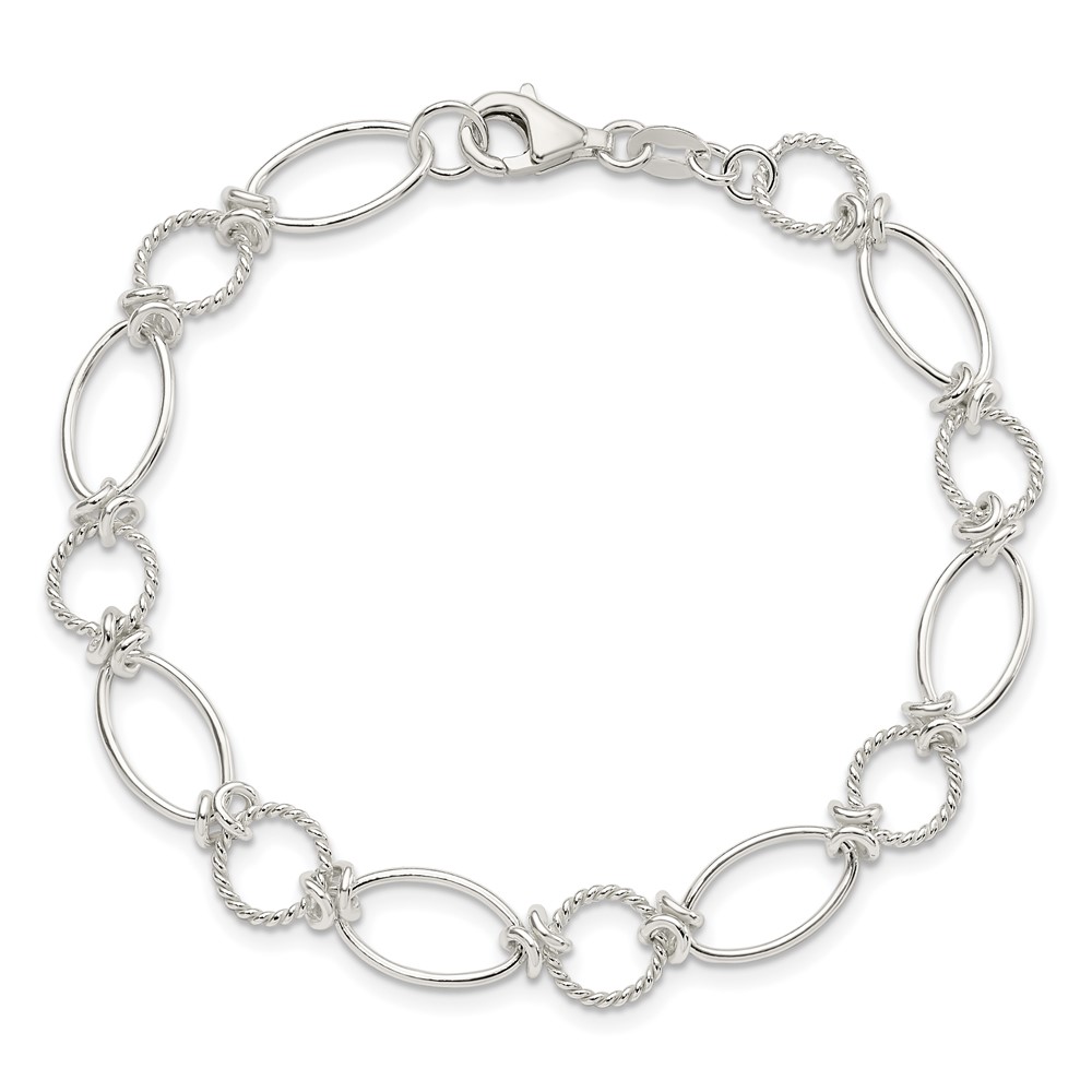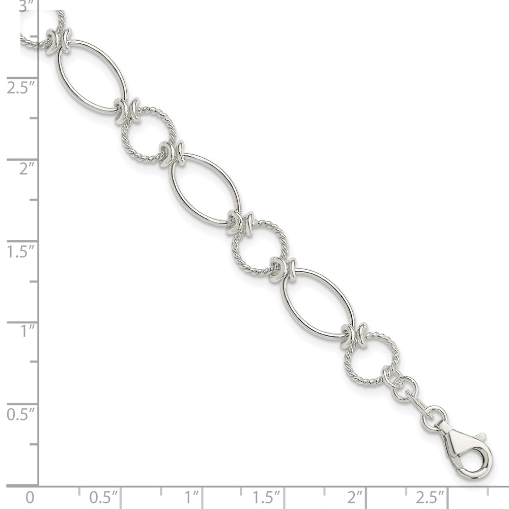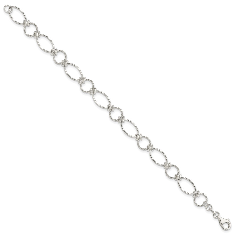 Sterling Silver Polished Textured Fancy Circle and Oval Link Bracelet