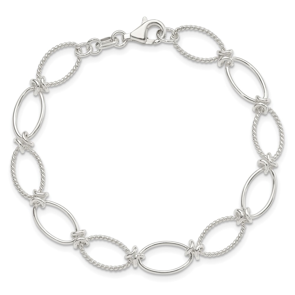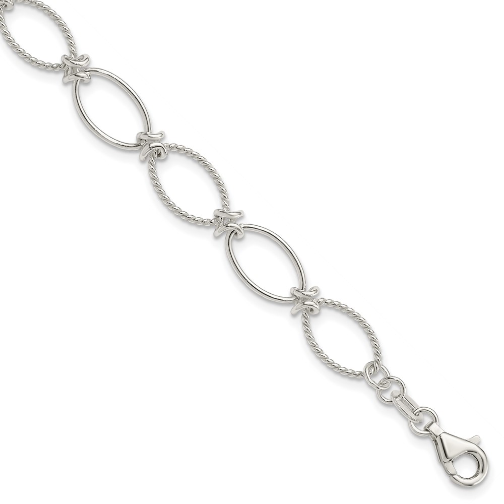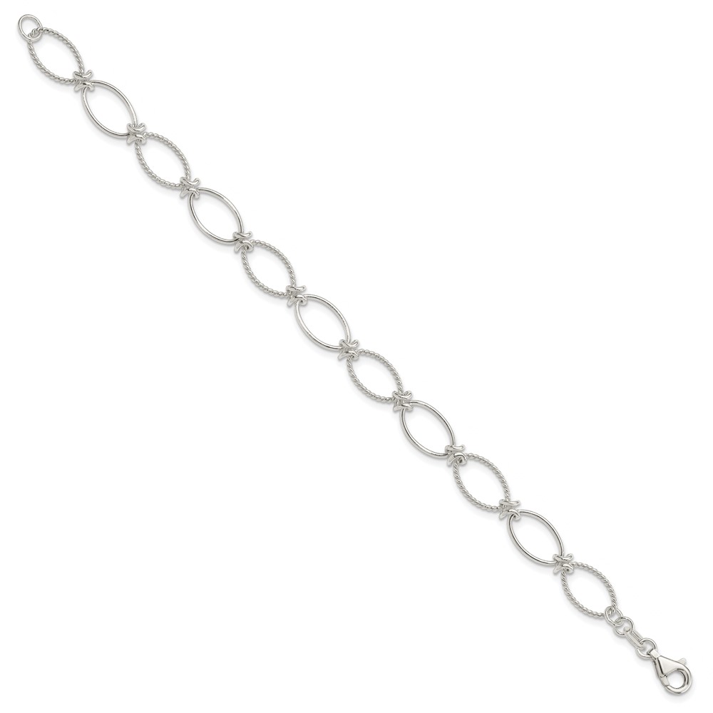 Sterling Silver Polished Textured Fancy Oval Link Bracelet