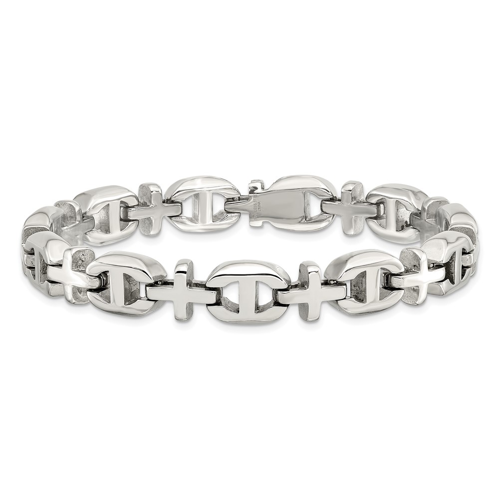 Chisel Stainless Steel Polished 8.5 inch Cross Link Bracelet
