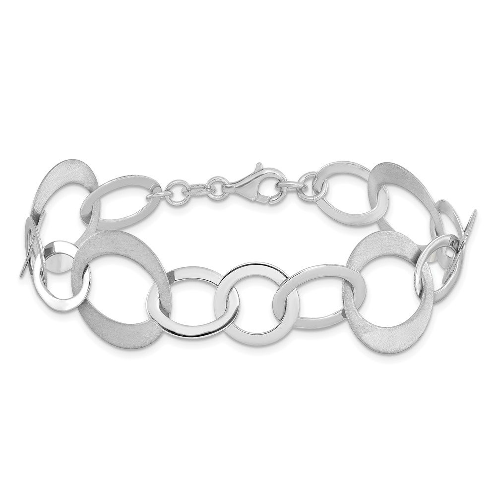 Leslie's Sterling Silver Rhodium-plated Polished and Brushed Link Bracelet