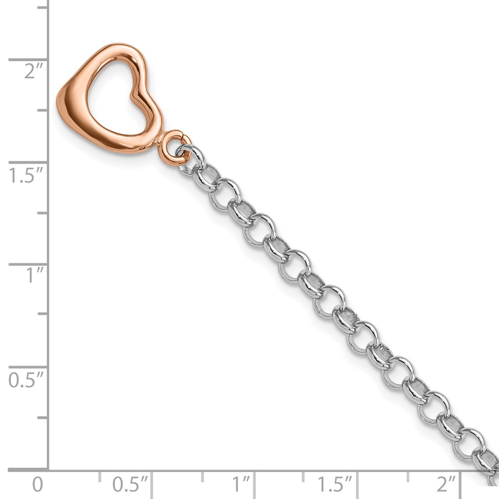 Sterling Silver Rhodium-plated Rose-tone Rolo w/Heart Bracelet
