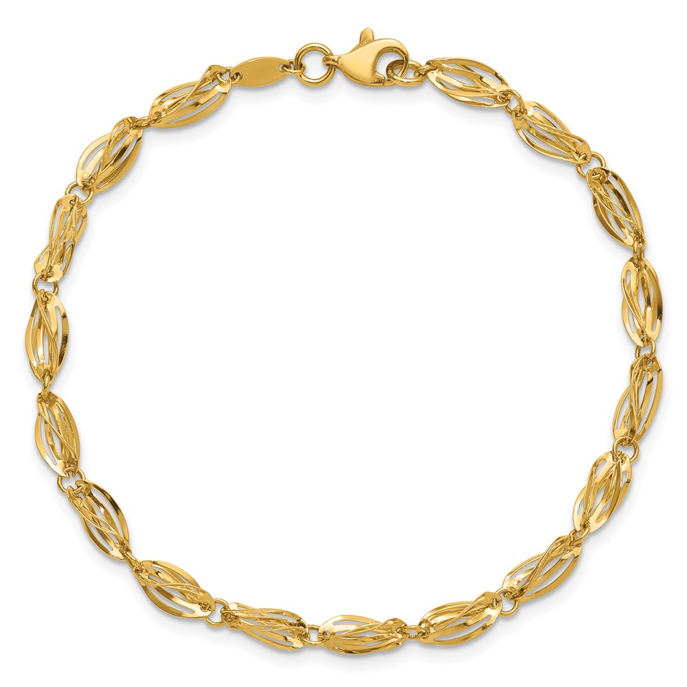 14K Polished Fancy Twisted Oval Link 7.75 inch Bracelet