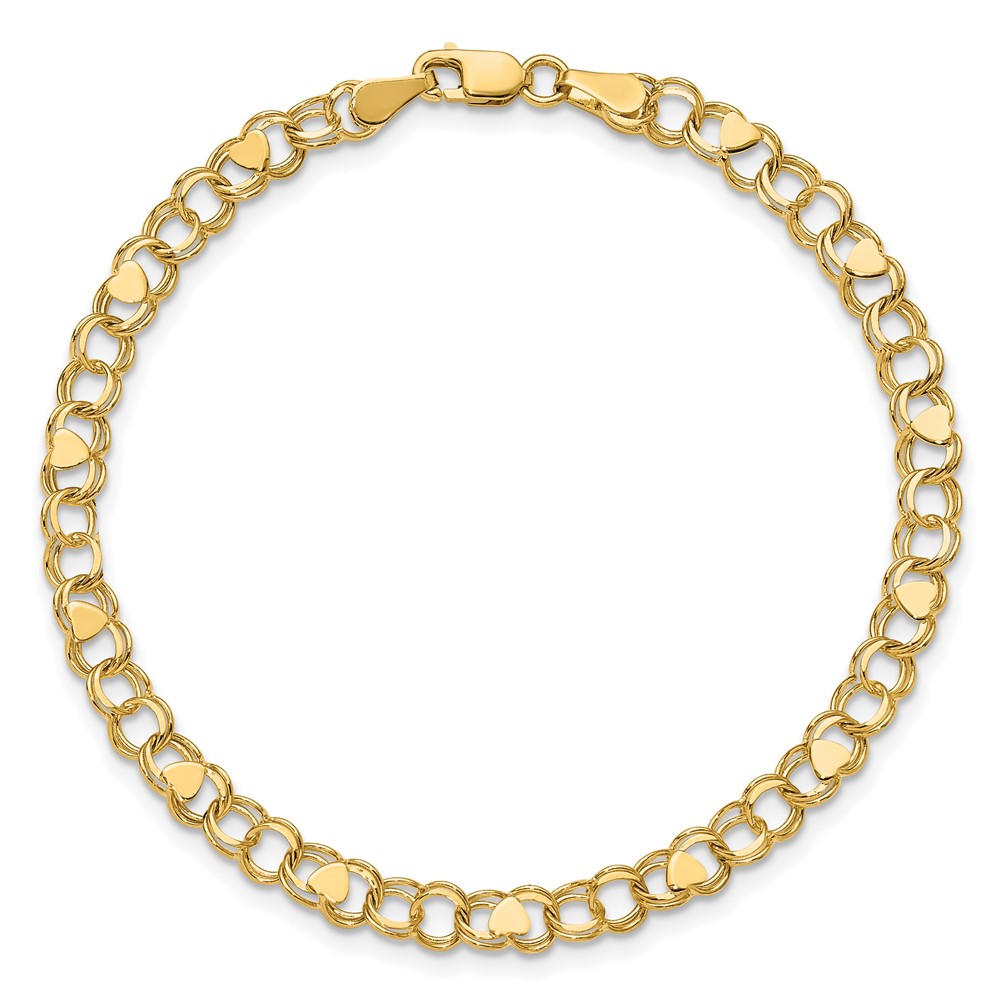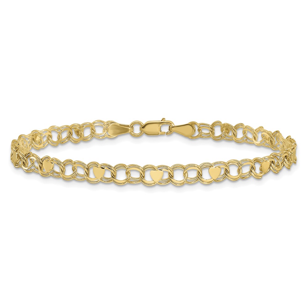 10k Double Link Heart Charm Bracelet