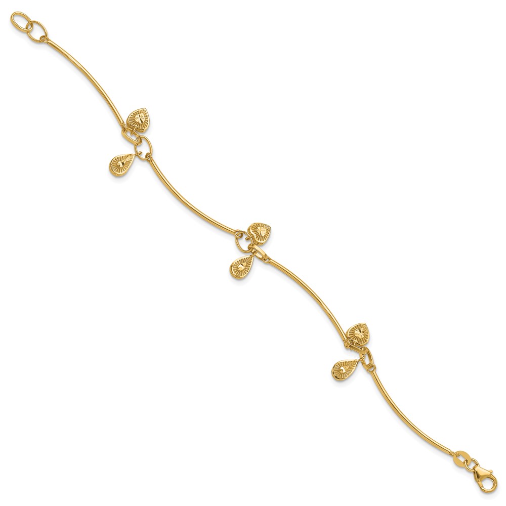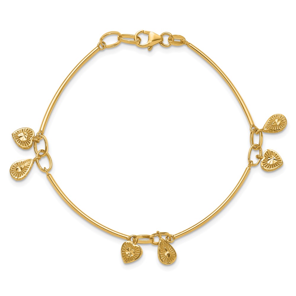 Leslie's 14K Polished and Diamond-cut Heart Charm Bracelet