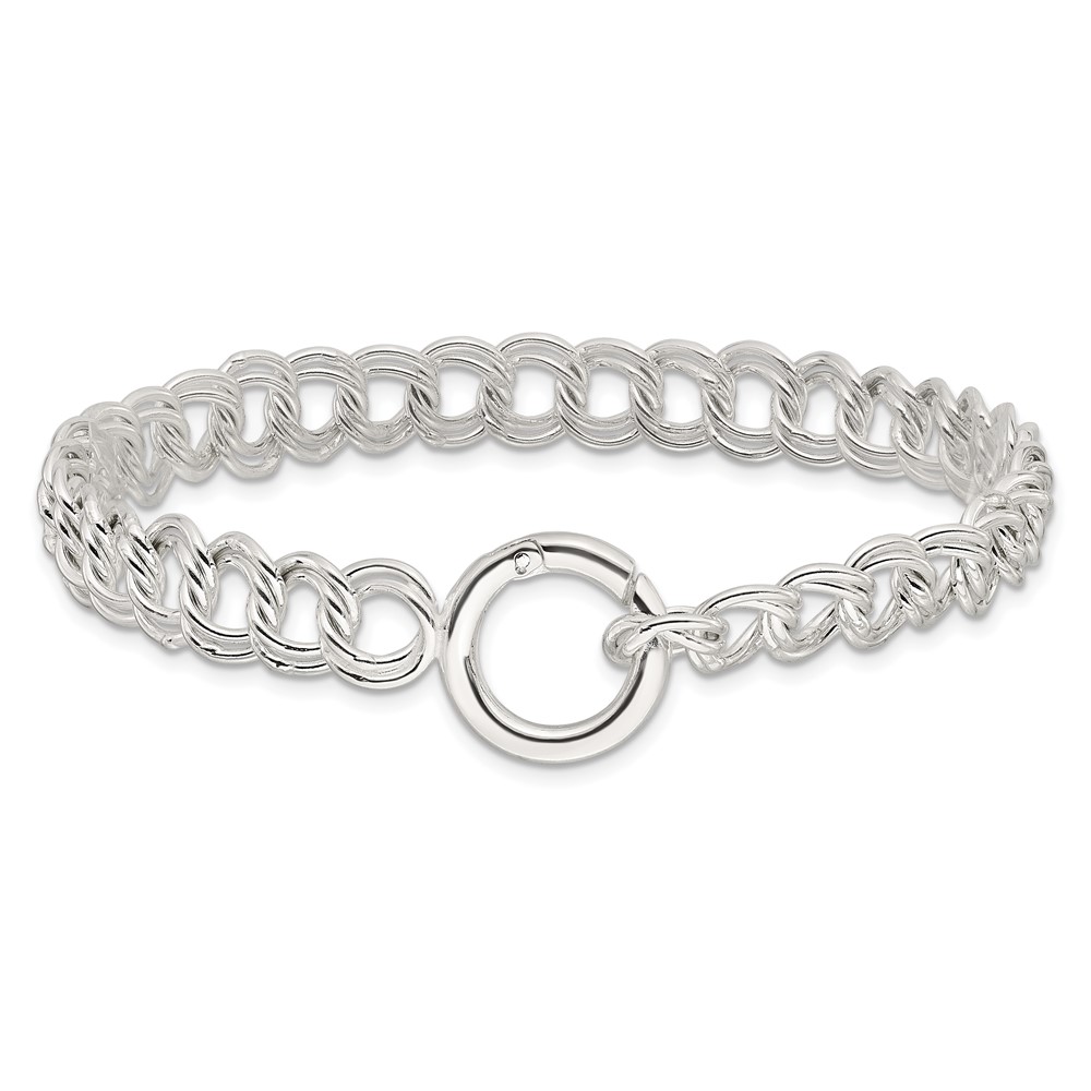Sterling Silver Polished Double Link 8in Charm Bracelet