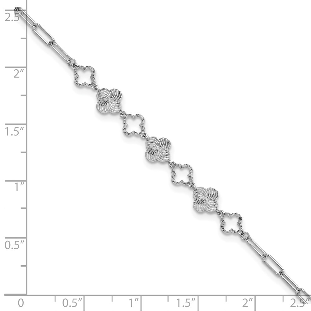 Herco Platinum Polished Diamond-cut Flower Paperclip Link 7 Inch with 1 Inch Extension Bracelet