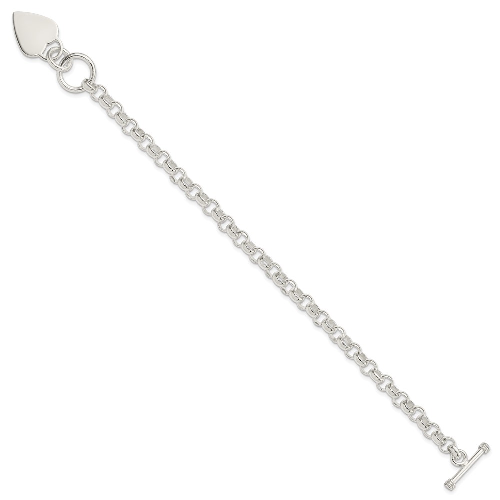 Sterling Silver Engraveable Heart Disc on Fancy Link Toggle Bracelet