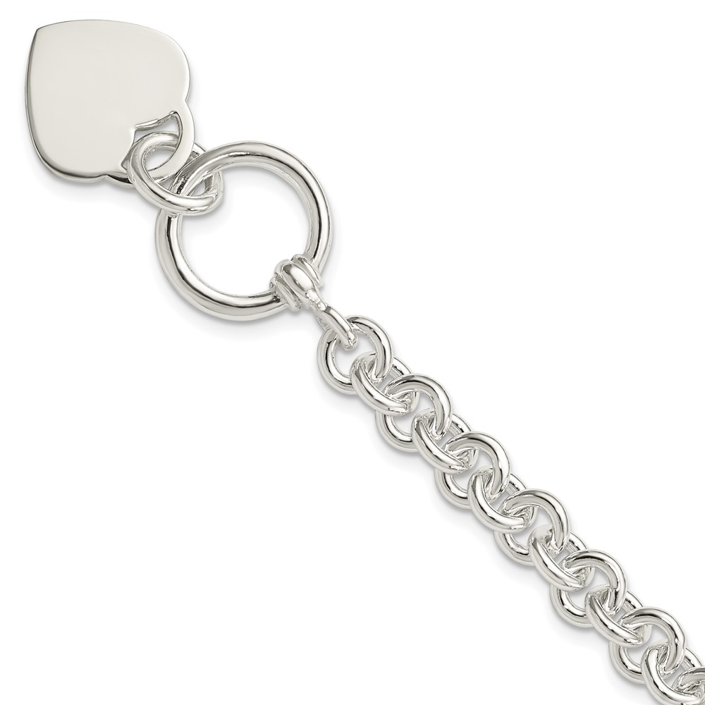 Sterling Silver Engraveable Heart Disc on Fancy Link Toggle Bracelet