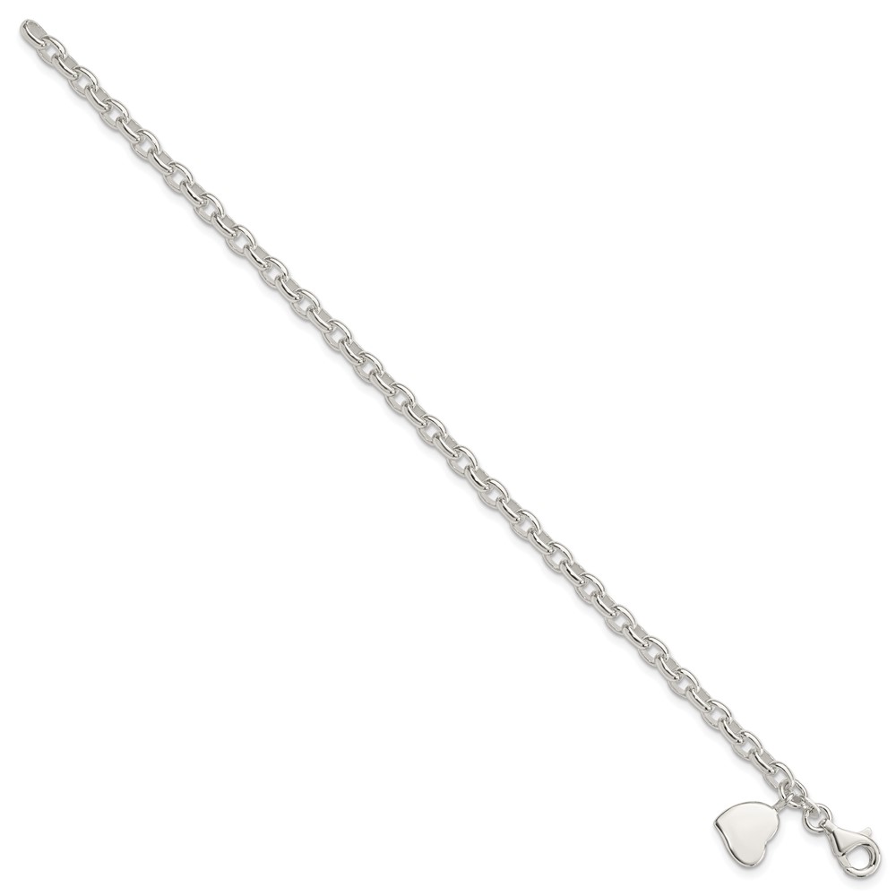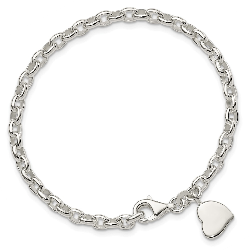 Sterling Silver Oval Rolo with Solid Engraveable Heart Bracelet