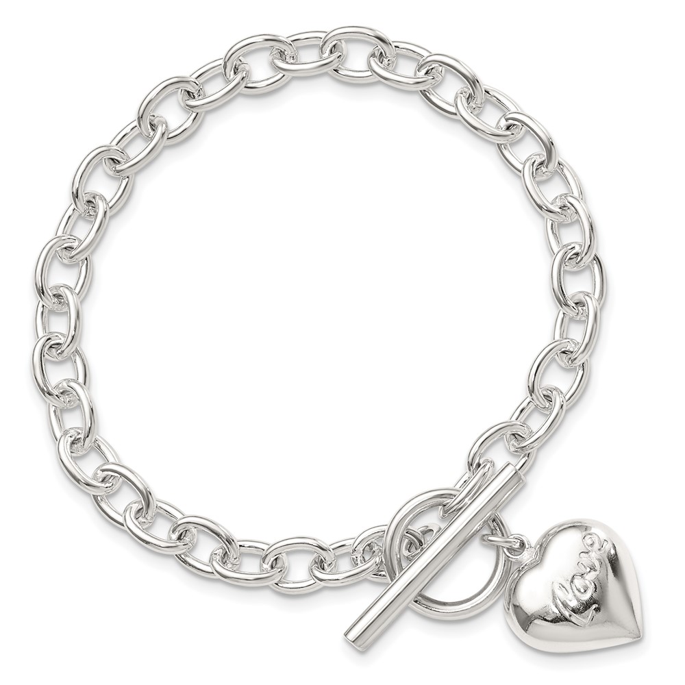 Sterling Silver LOVE Puffed Heart Charm Bracelet