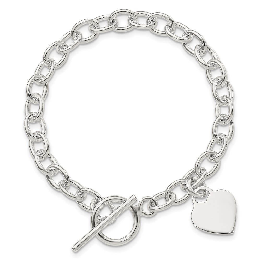 Sterling Silver Dangling Engraveable Heart Charm Bracelet