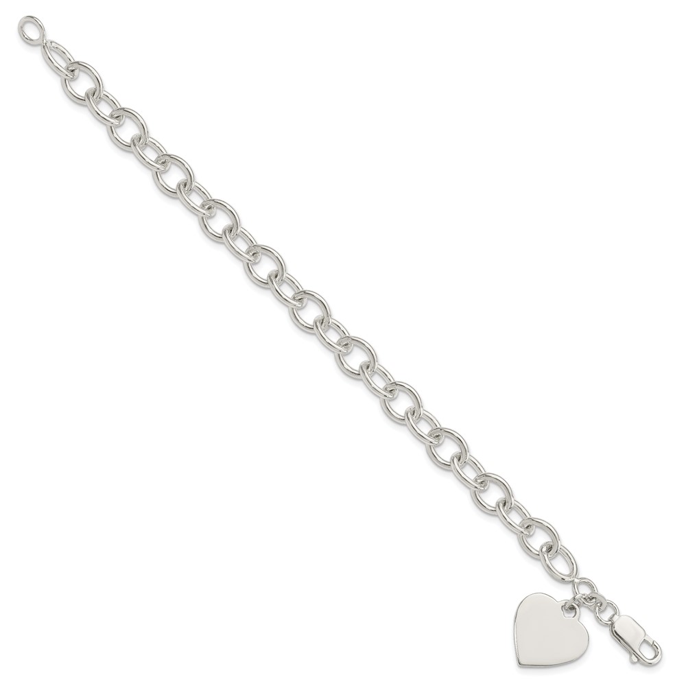 Sterling Silver Engraveable Heart Fancy Link Bracelet