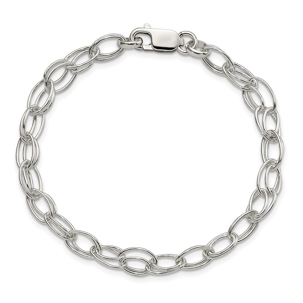 Herco Platinum Polished Diamond-cut Flower Paperclip Link 7 Inch with 1 Inch Extension Bracelet