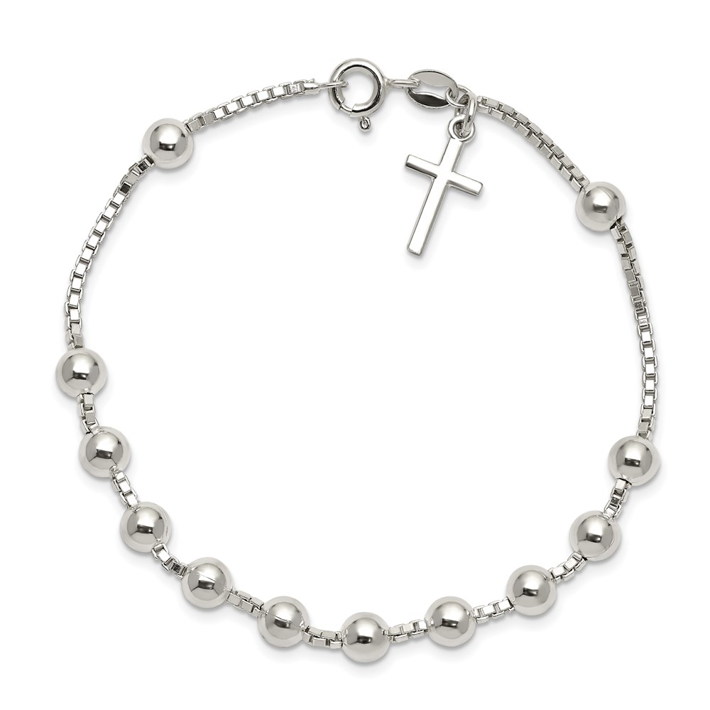 Sterling Silver Cross on Bead Bracelet