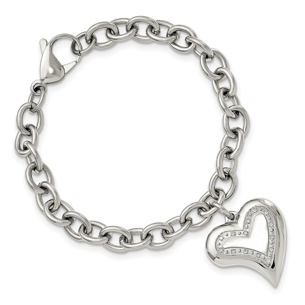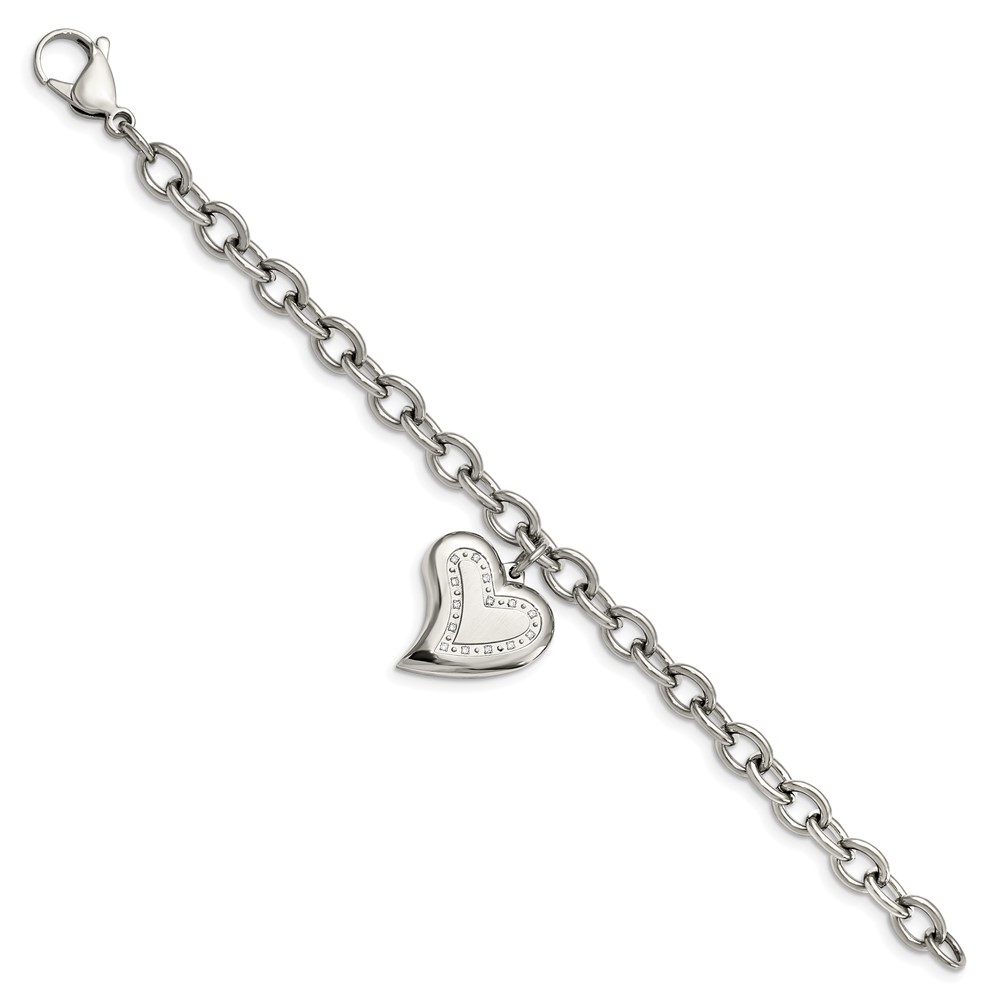 Chisel Stainless Steel Polished with CZ Heart Charm 7.5 inch Bracelet