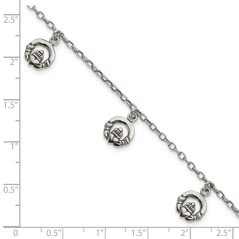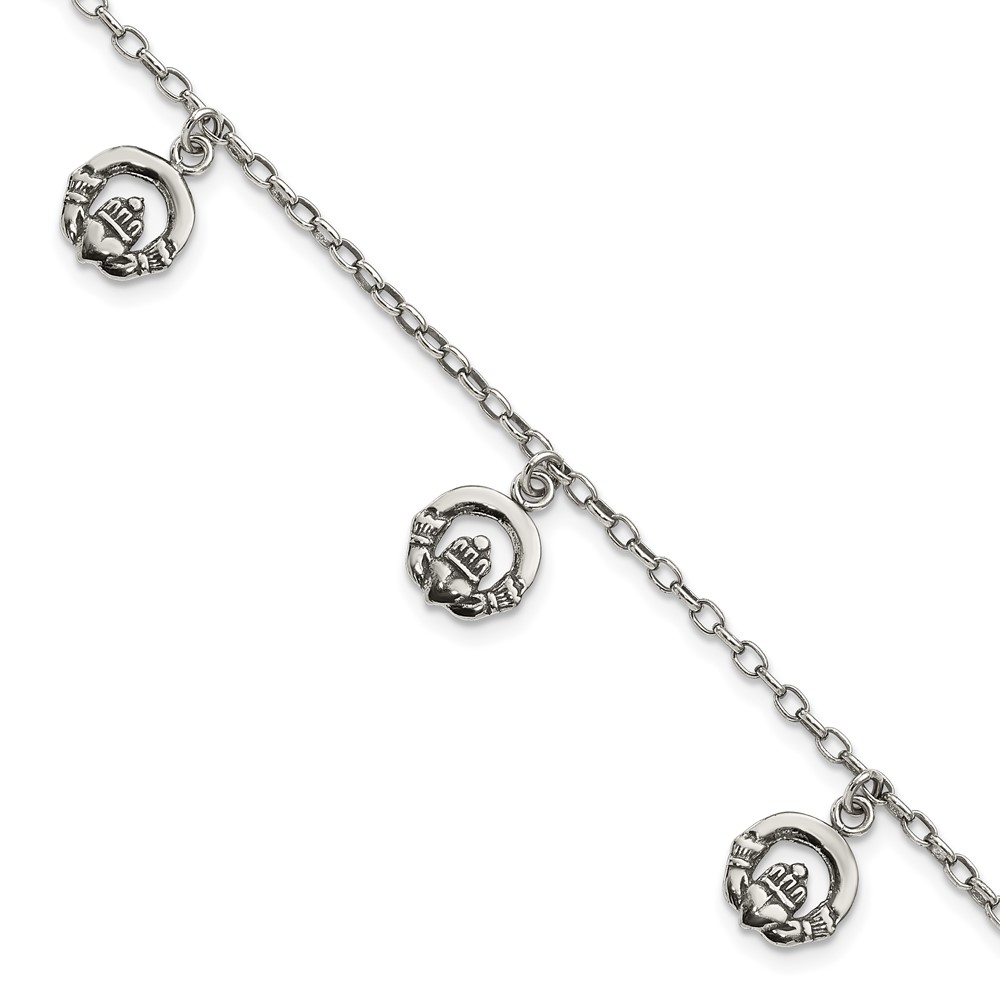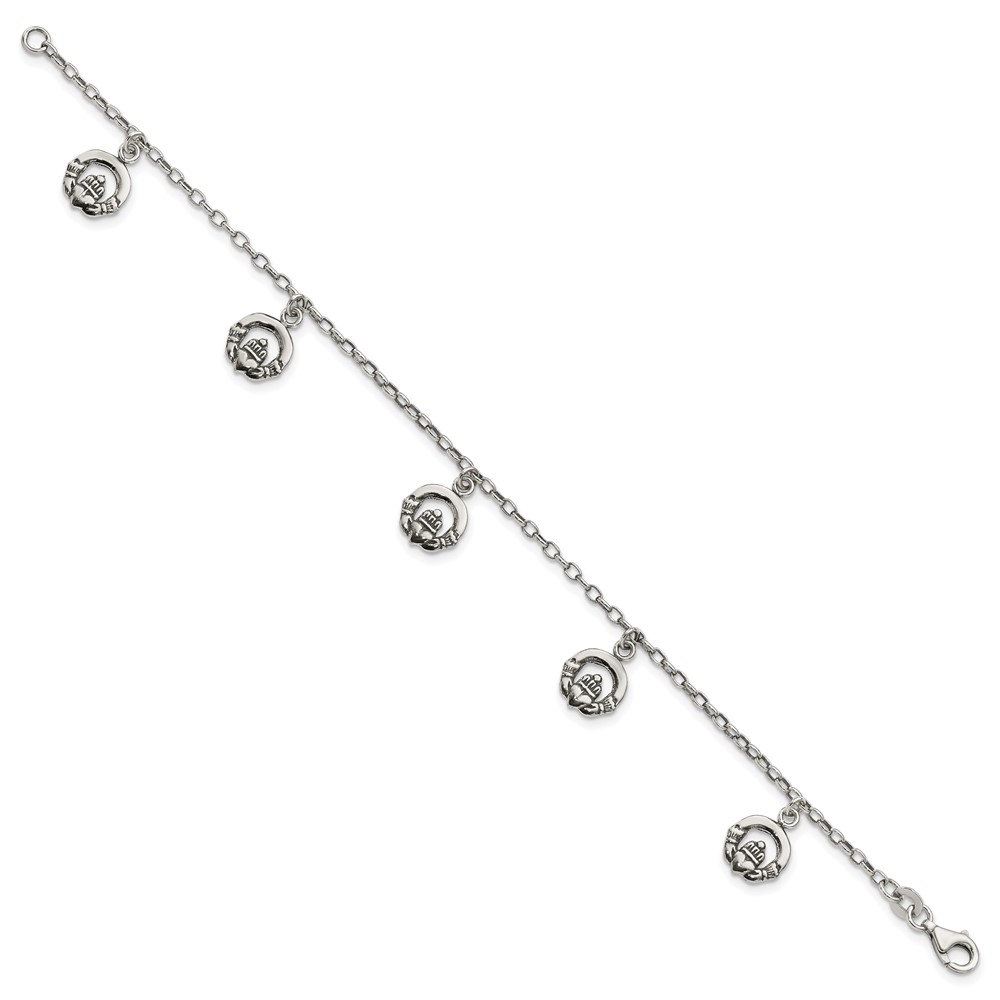 Sterling Silver Rhodium Created Opal Fish and Shells Charm 7.25 inch Bracelet