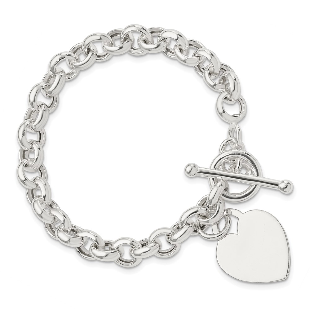 Sterling Silver Engraveable Heart Toggle Bracelet