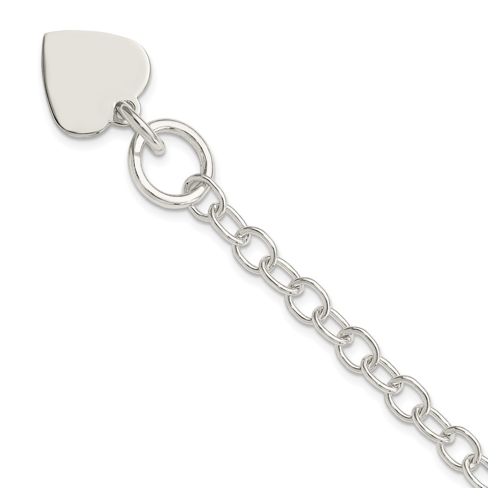 Sterling Silver Polished Engraveable Heart Charm Bracelet