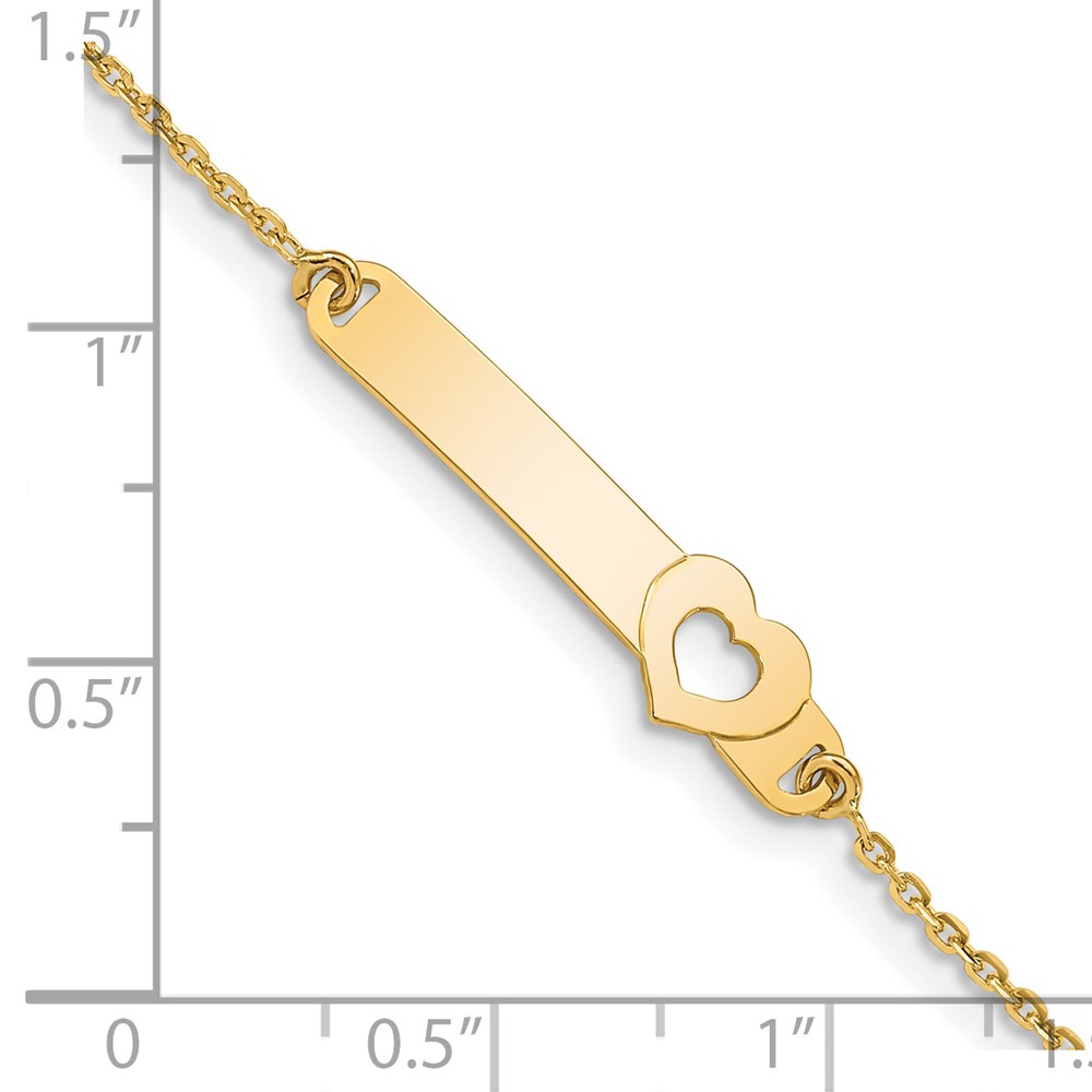 14K Polished Solid Chain/Solid Plate Cut-out Heart 27.7x6.5mm Plate 5.5 inch Baby/Child ID Bracelet with 1 inch Extender