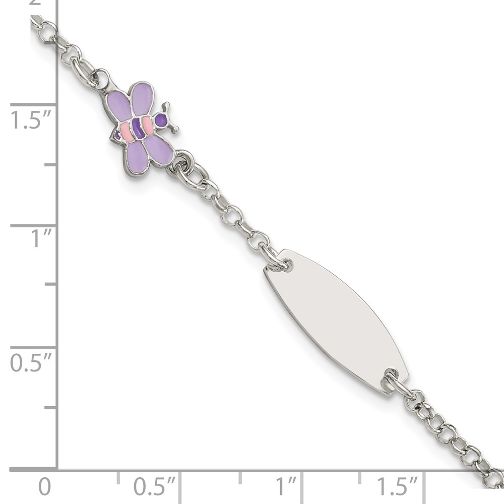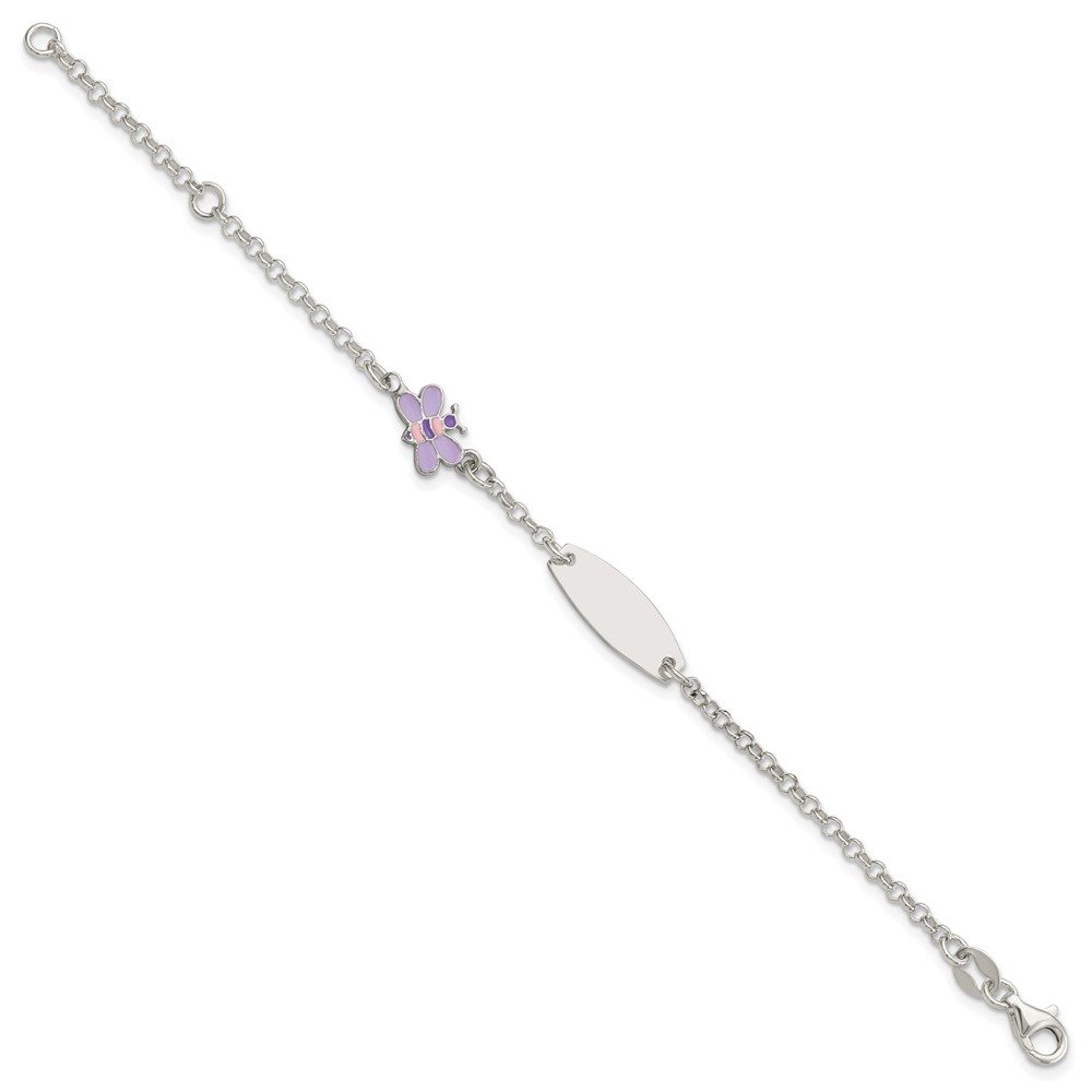Sterling Silver Childrens Enameled Butterfly 5in Plus 1IN EXT ID Bracelet
