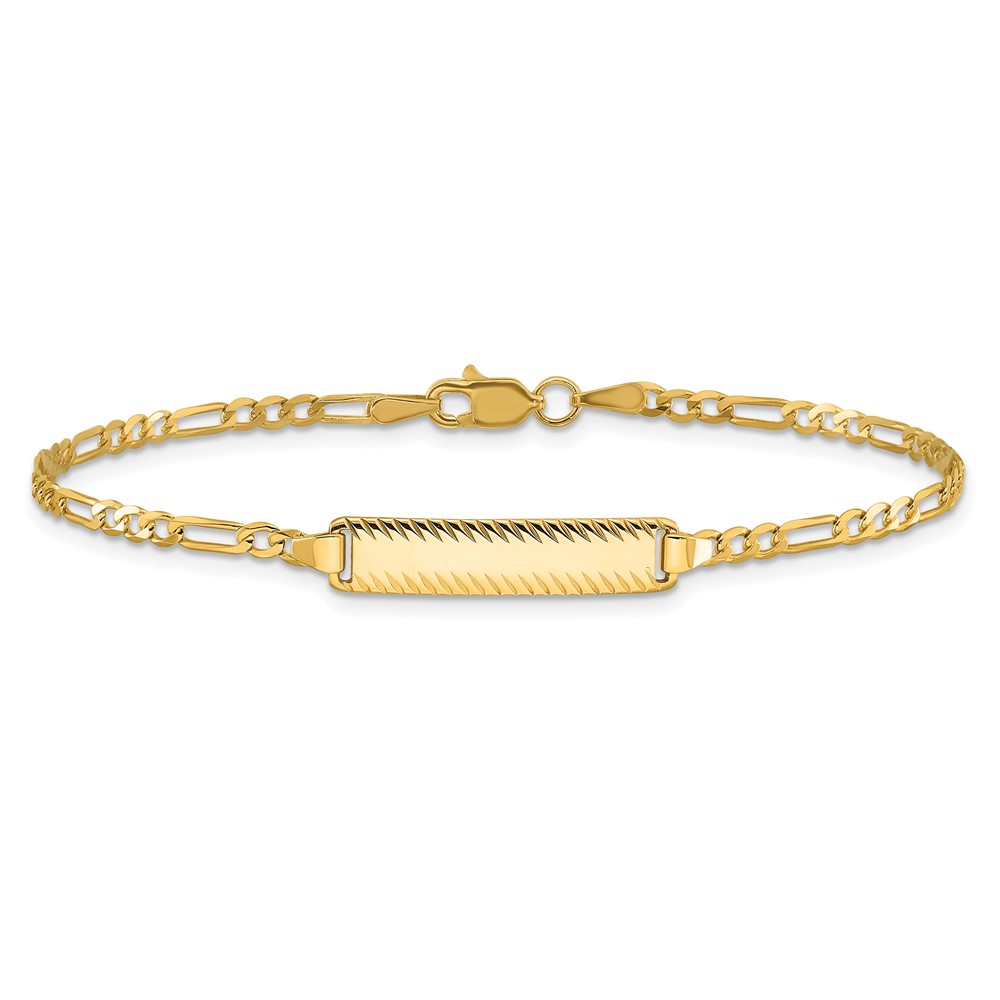 14k Polished Solid Chain/Solid Plate Figaro Link Diamond-cut 20x5mm Plate 7 inch ID Bracelet