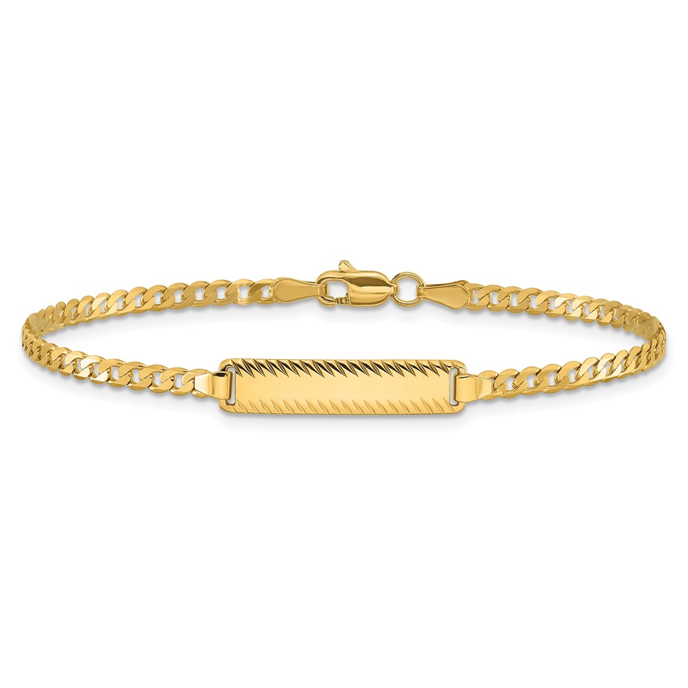 14k Polished Solid Chain/Solid Plate Curb Link Diamond-cut 20x5mm Plate 7 inch ID Bracelet