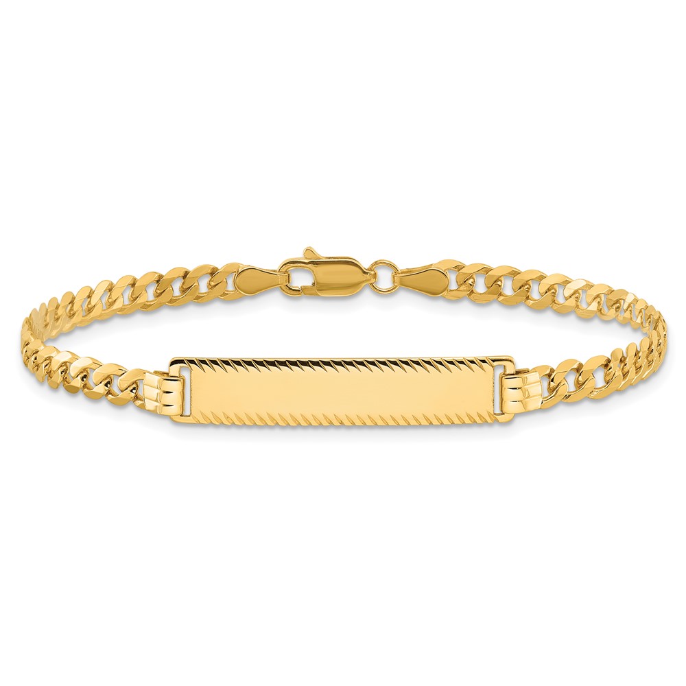 14k Polished Solid Chain/Solid Plate Flat Curb Link Diamond-cut 29x6.5mm Plate 8 inch ID Bracelet