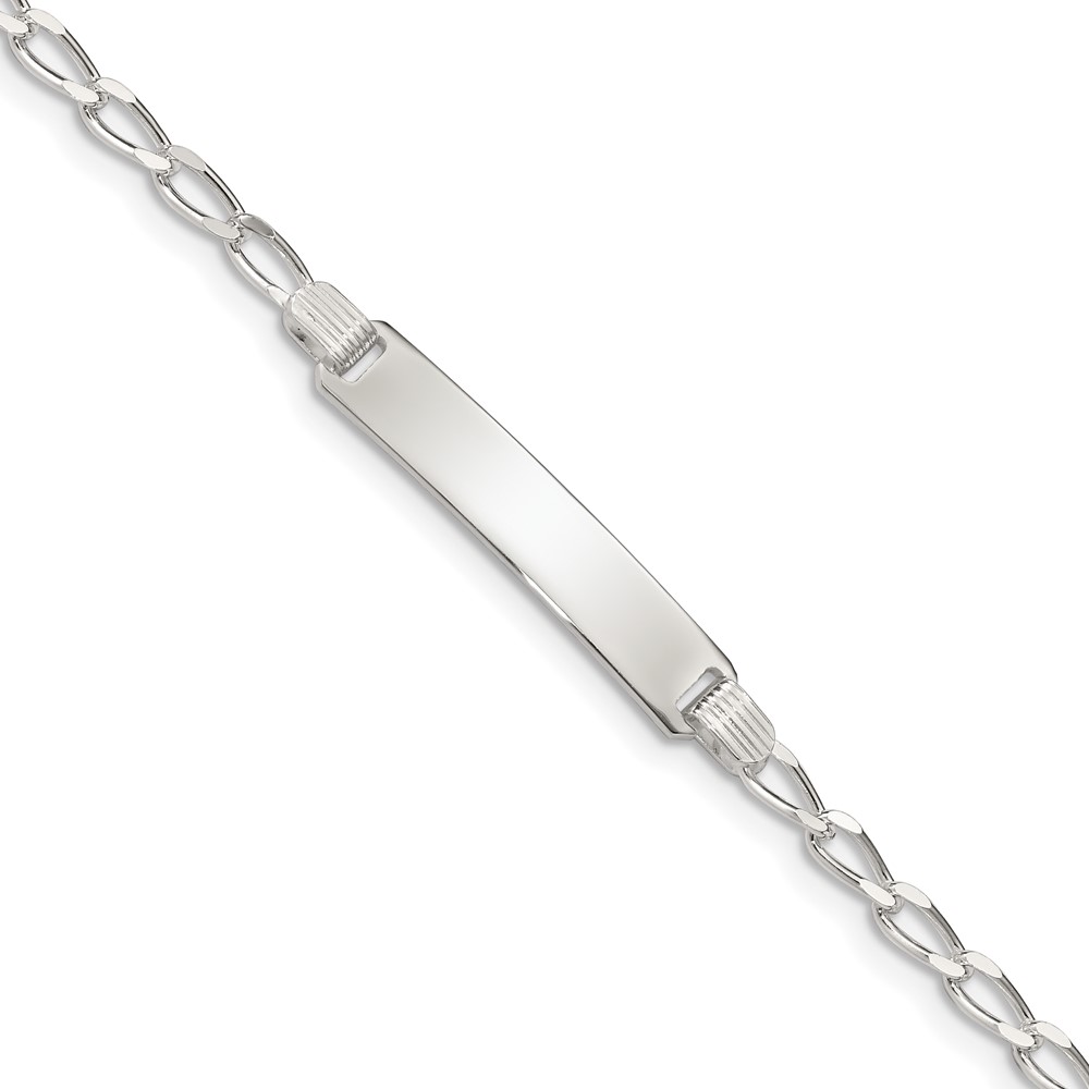 14k Polished Solid Chain/Solid Plate Figaro Link Diamond-cut 20x5mm Plate 8 inch ID Bracelet