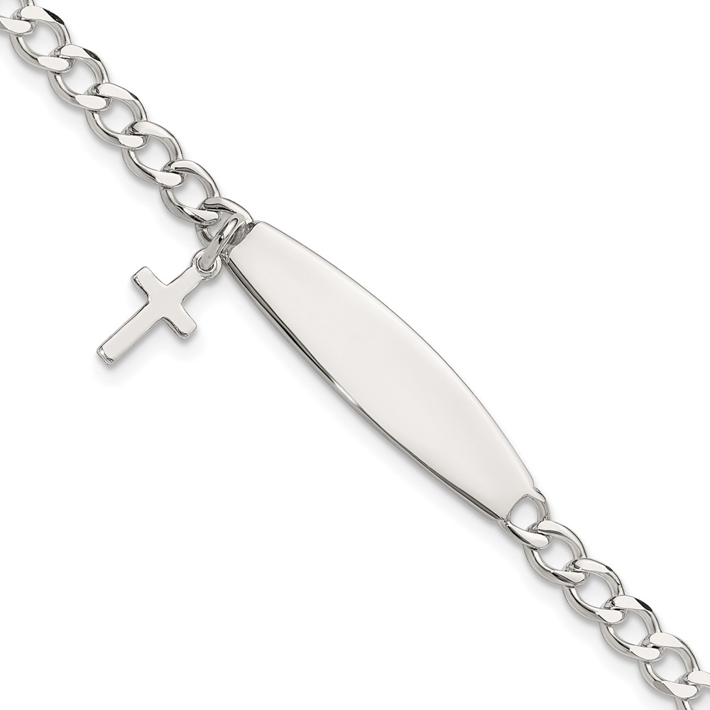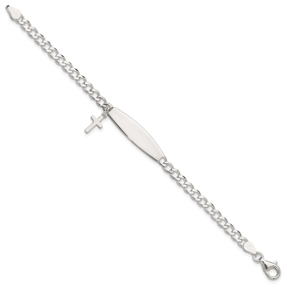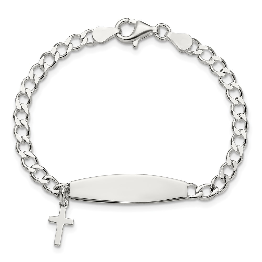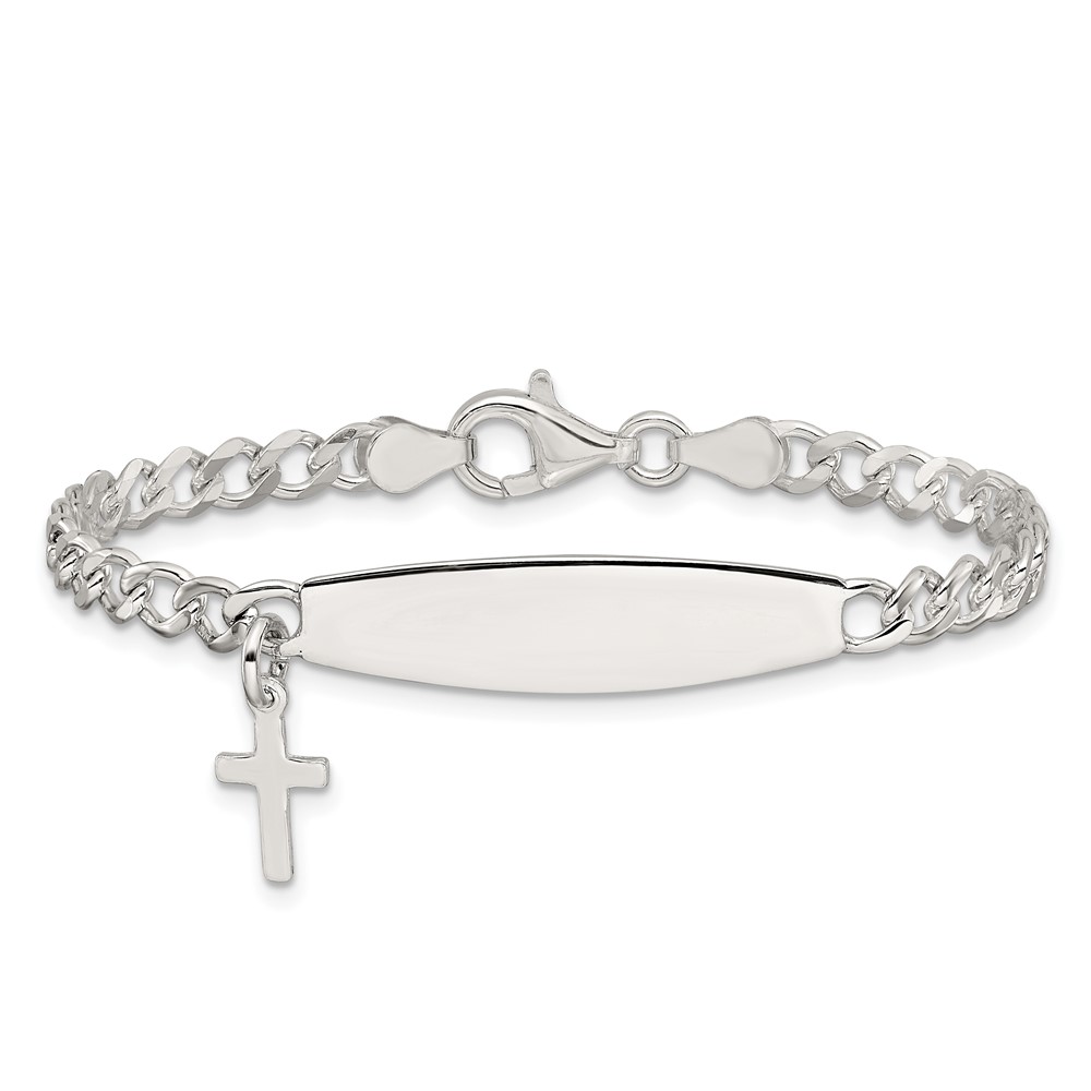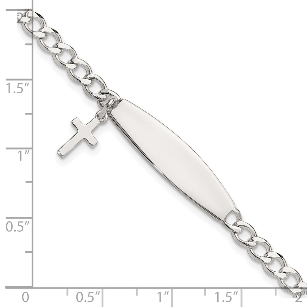 Sterling Silver Polished Cross Dangle ID Children's Bracelet