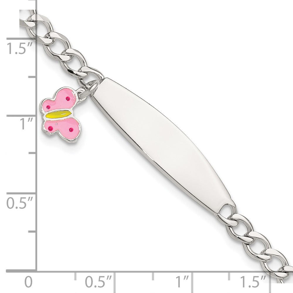 Sterling Silver Polished and Enameled Butterfly Children's ID Bracelet