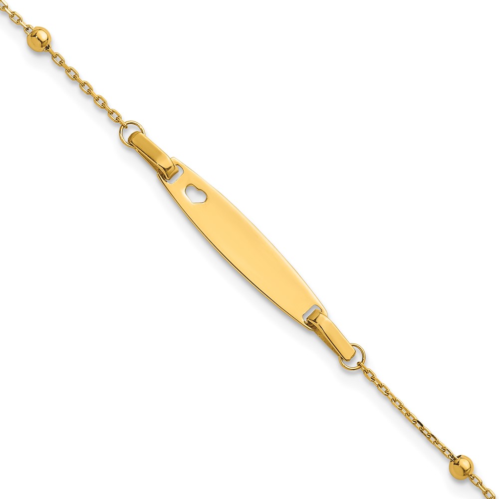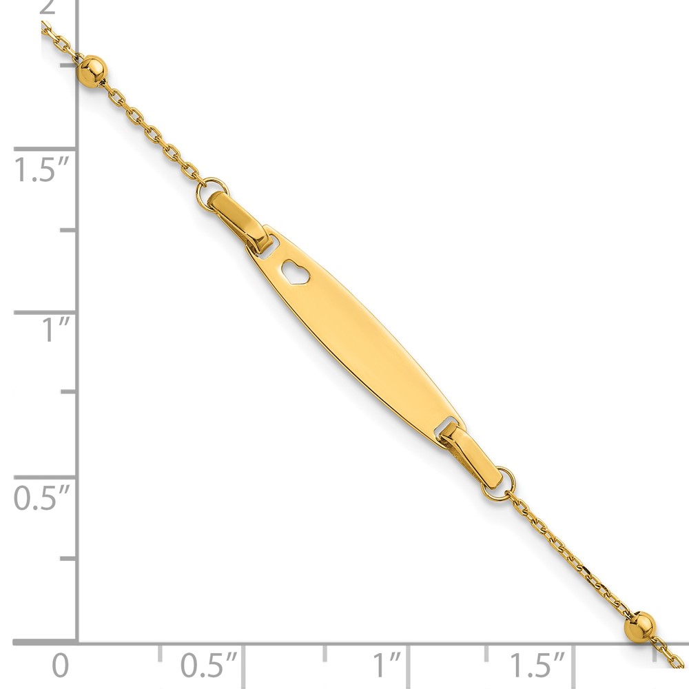 14K Polished Beaded Cut-out Heart 24x4.7mm Plate 5 inch Baby/Child ID Bracelet with 1 inch Extender
