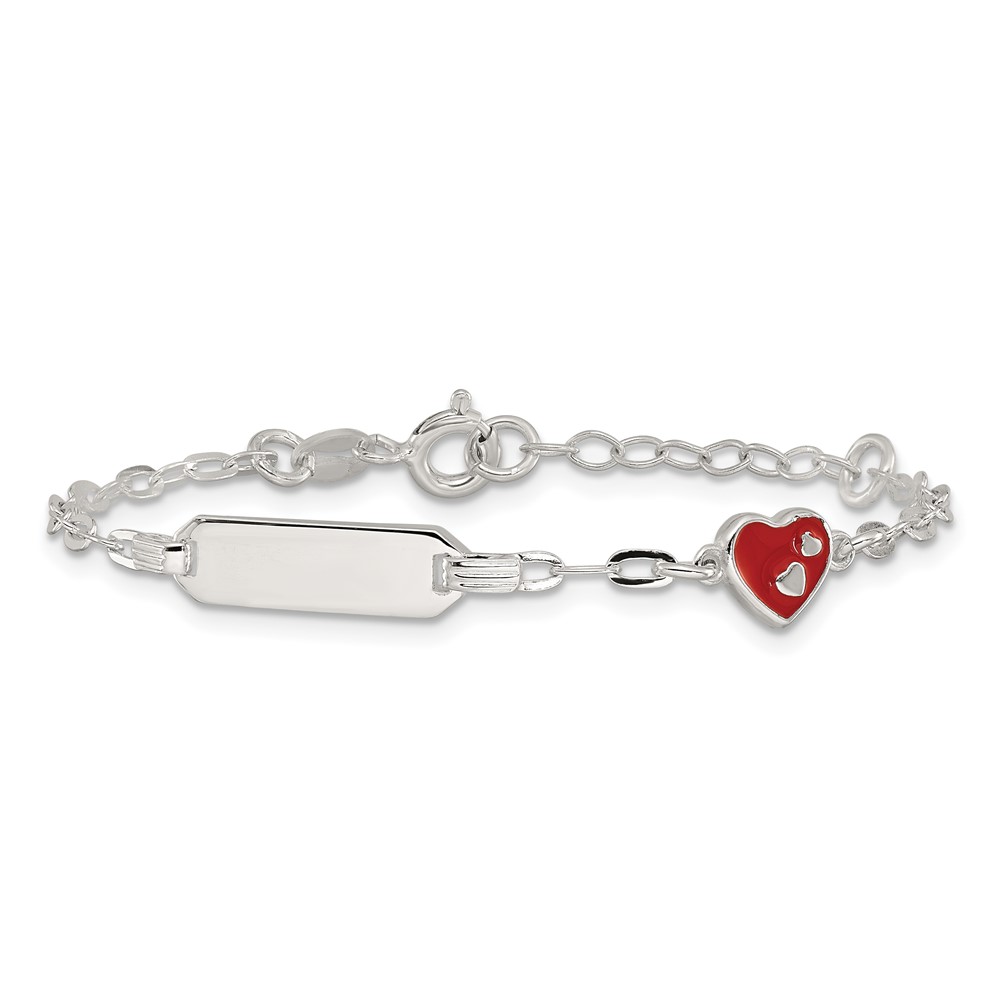 Sterling Silver Polished Red and White Enameled Heart 5 inch with 1 inch extension Childrens ID Bracelet