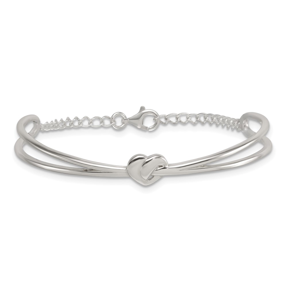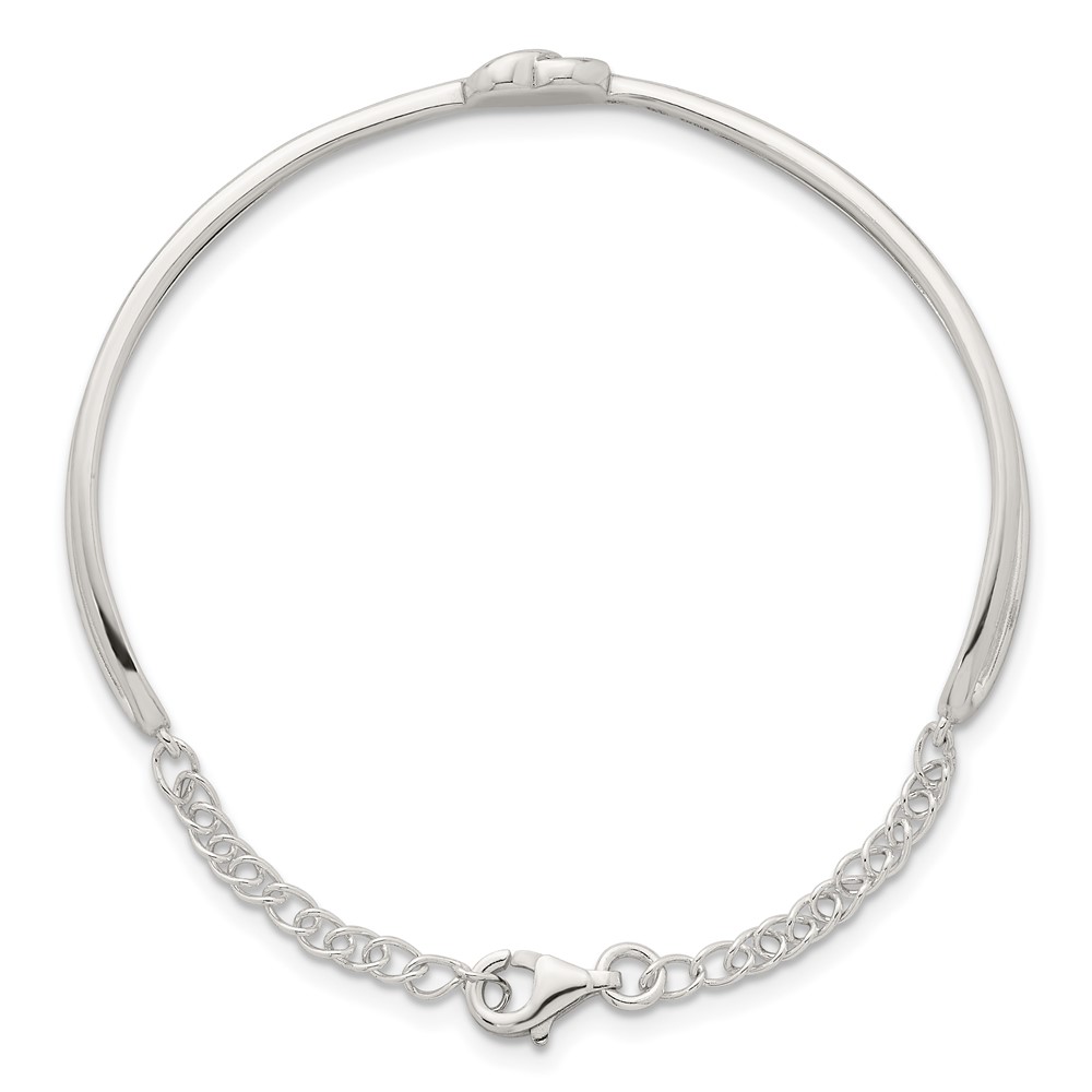 Sterling Silver Polished Twisted Heart Childrens Cuff Bracelet with Safety Chain