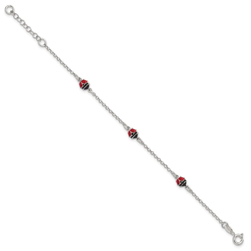 Sterling Silver Polished Red and Black Enameled Ladybugs 6 inch with 1 inch extension Childrens Bracelet