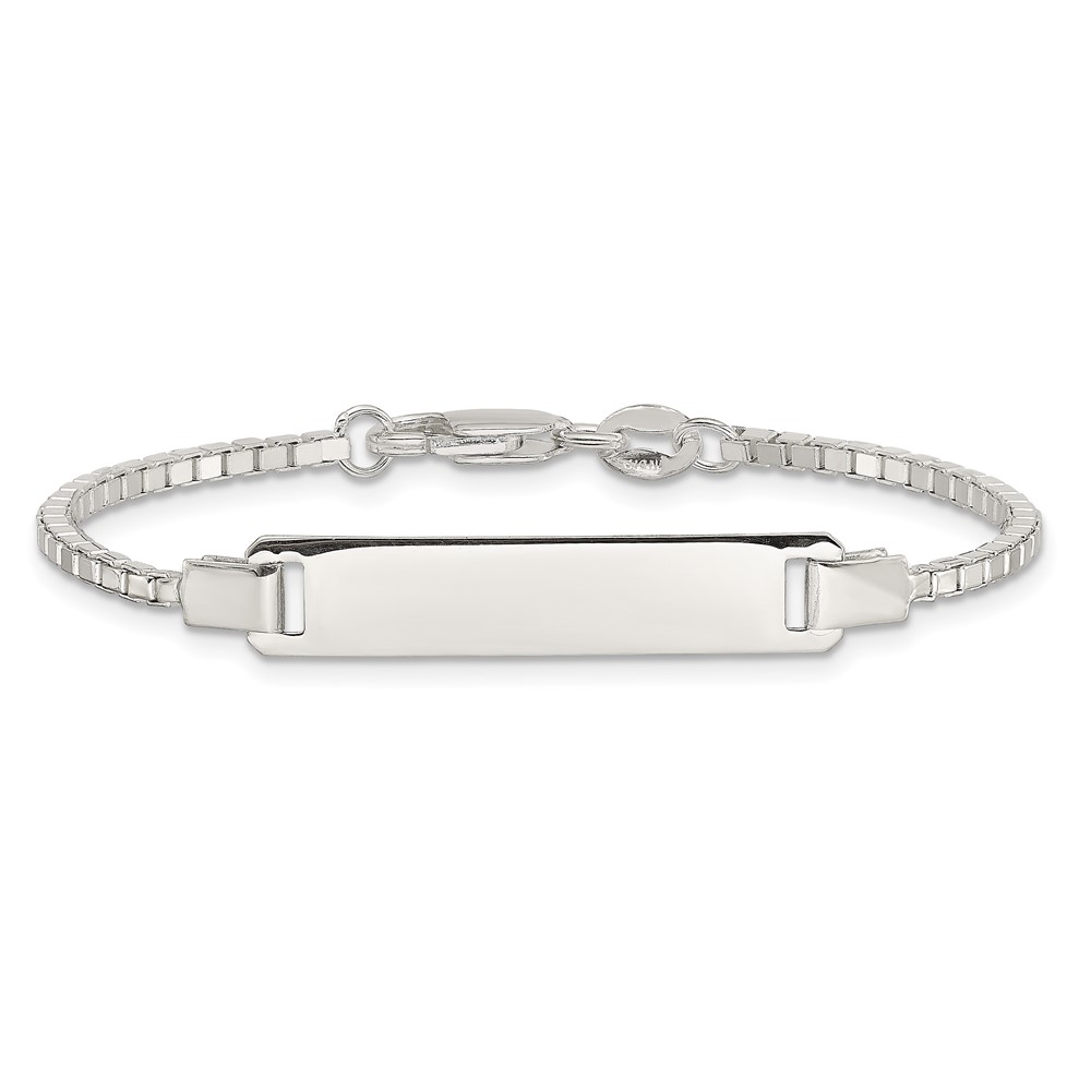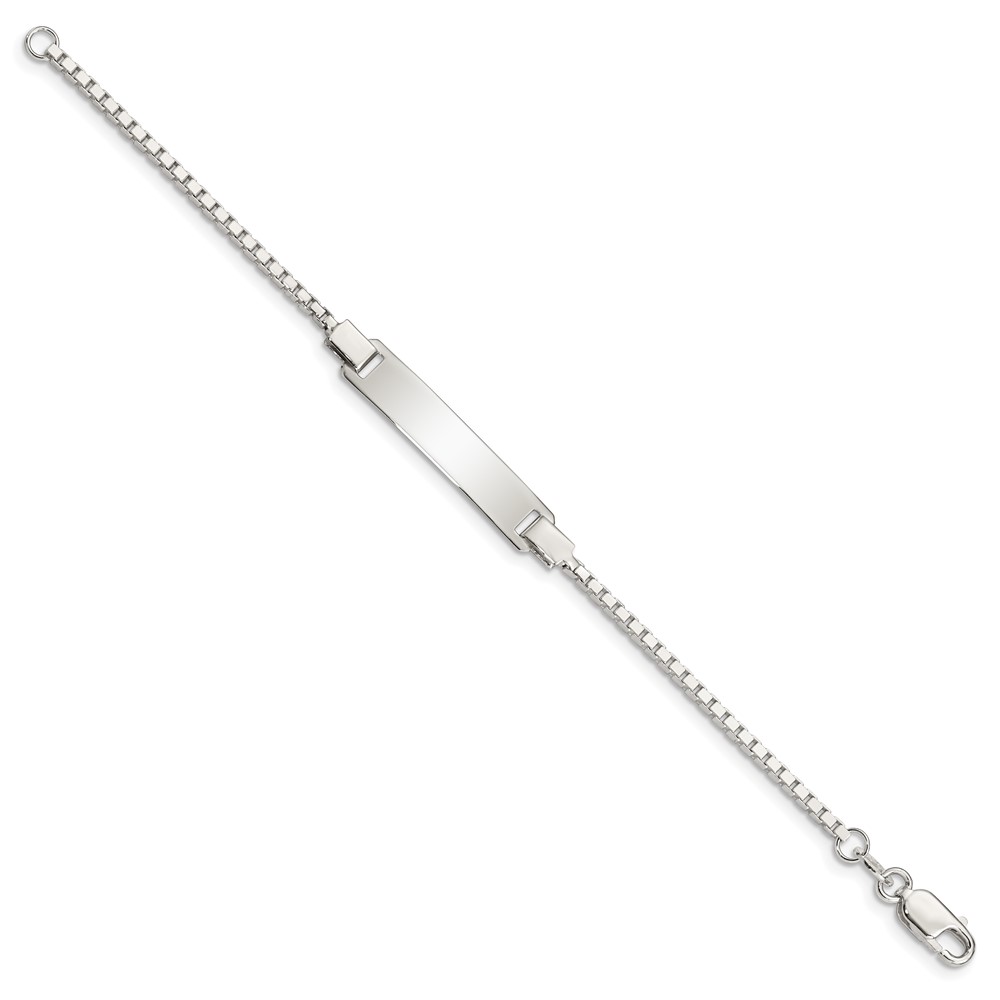 Sterling Silver Engraveable Childrens ID on Box Chain Bracelet