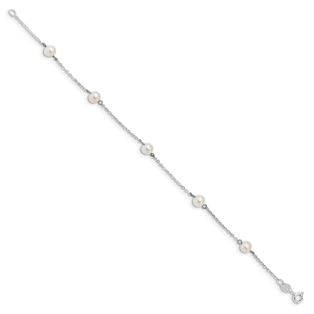 Sterling Silver Rhodium-plated 5-6mm White Round Freshwater Cultured Pearl 5-Station 7 inch Bracelet