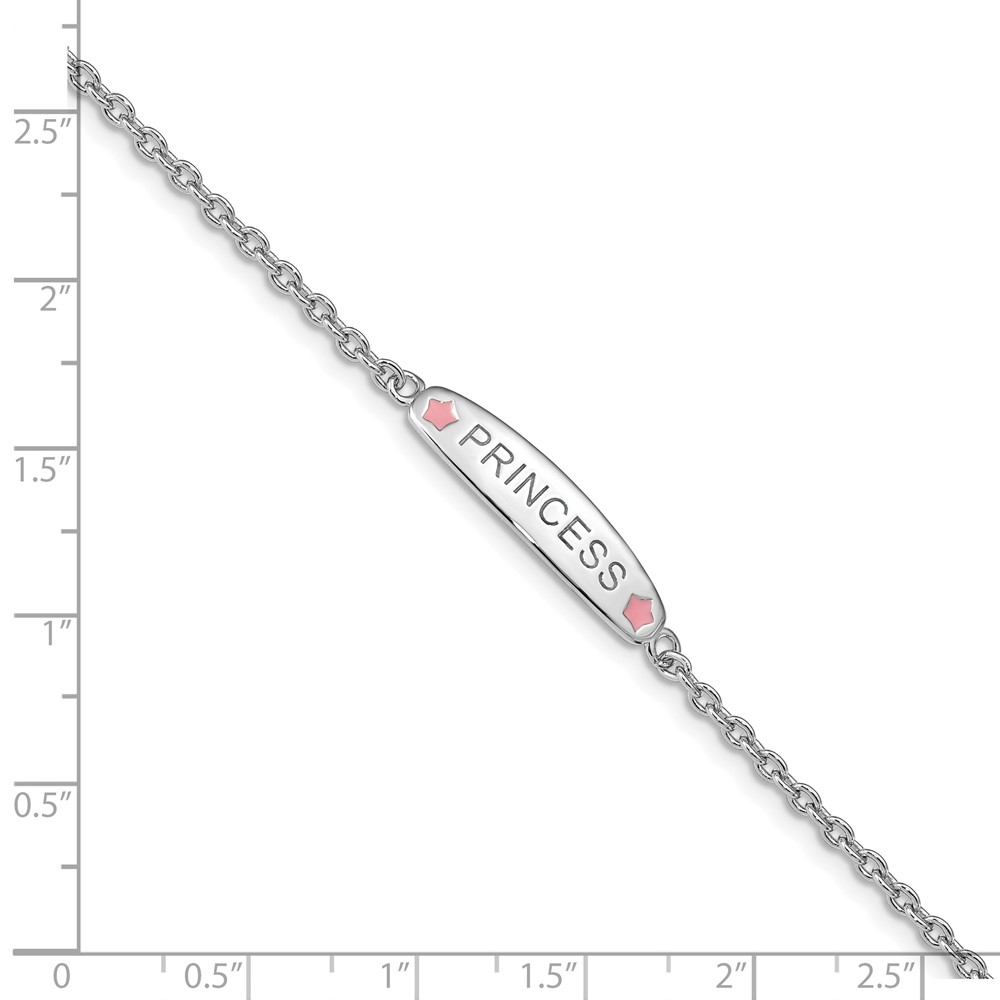 Sterling Silver Rhodium-plated Polished & Pink Enameled PRINCESS with 1 Inch Extension Children's Bracelet