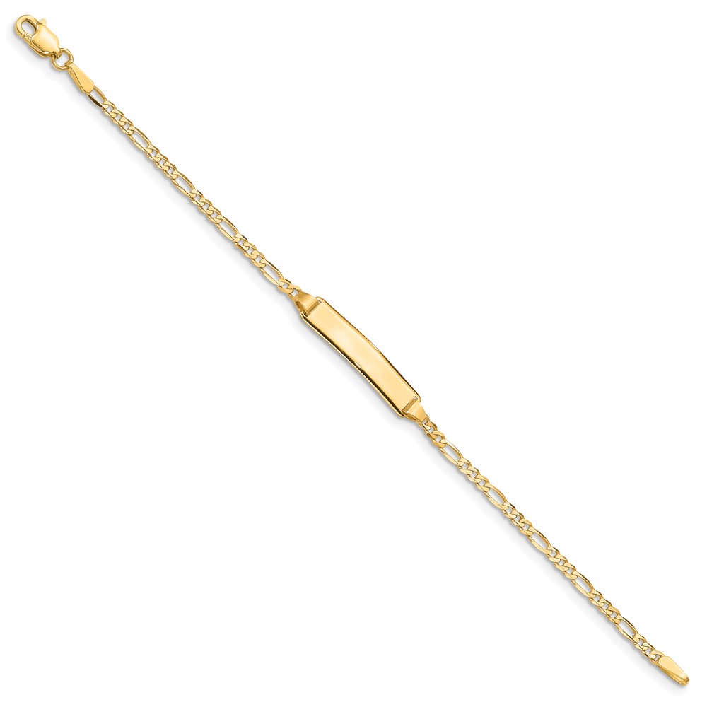 14k Polished Solid Chain/Solid Plate Figaro Link 19x4mm Plate 5.5 inch Baby/Child ID Bracelet