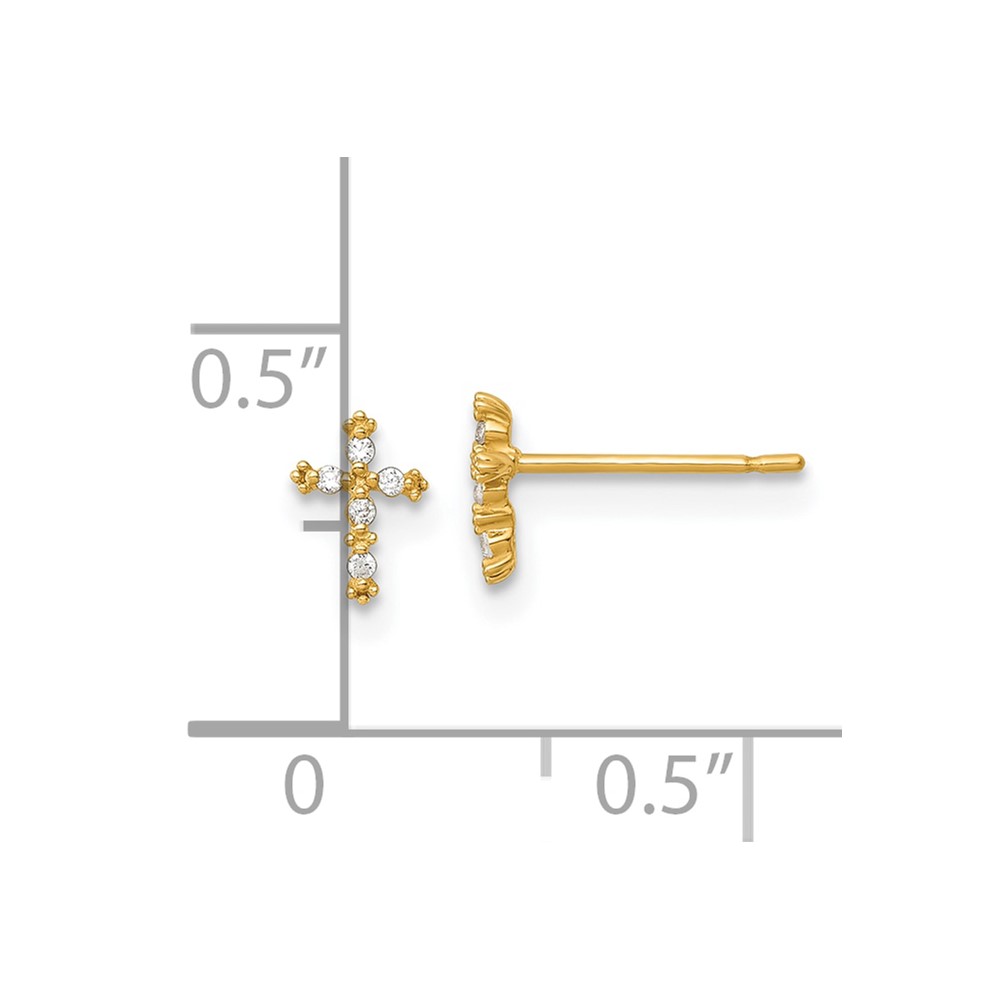 14k Madi K Polished CZ Cross Childrens Post Earrings