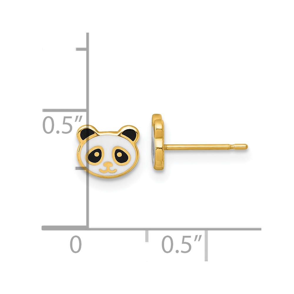 14k Madi K Polished Black and White Enameled Panda Childrens Post Earrings
