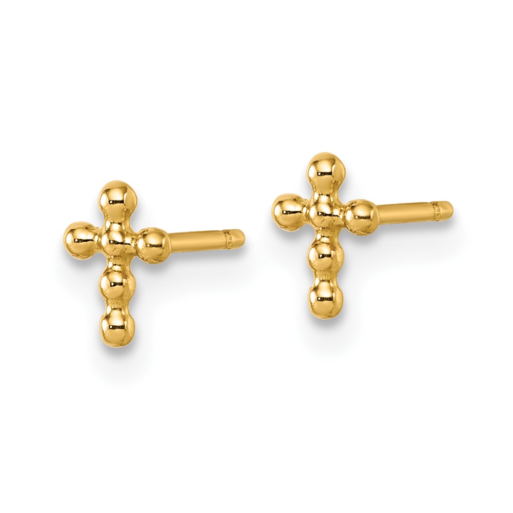 14K Polished Beaded Cross Post Earrings