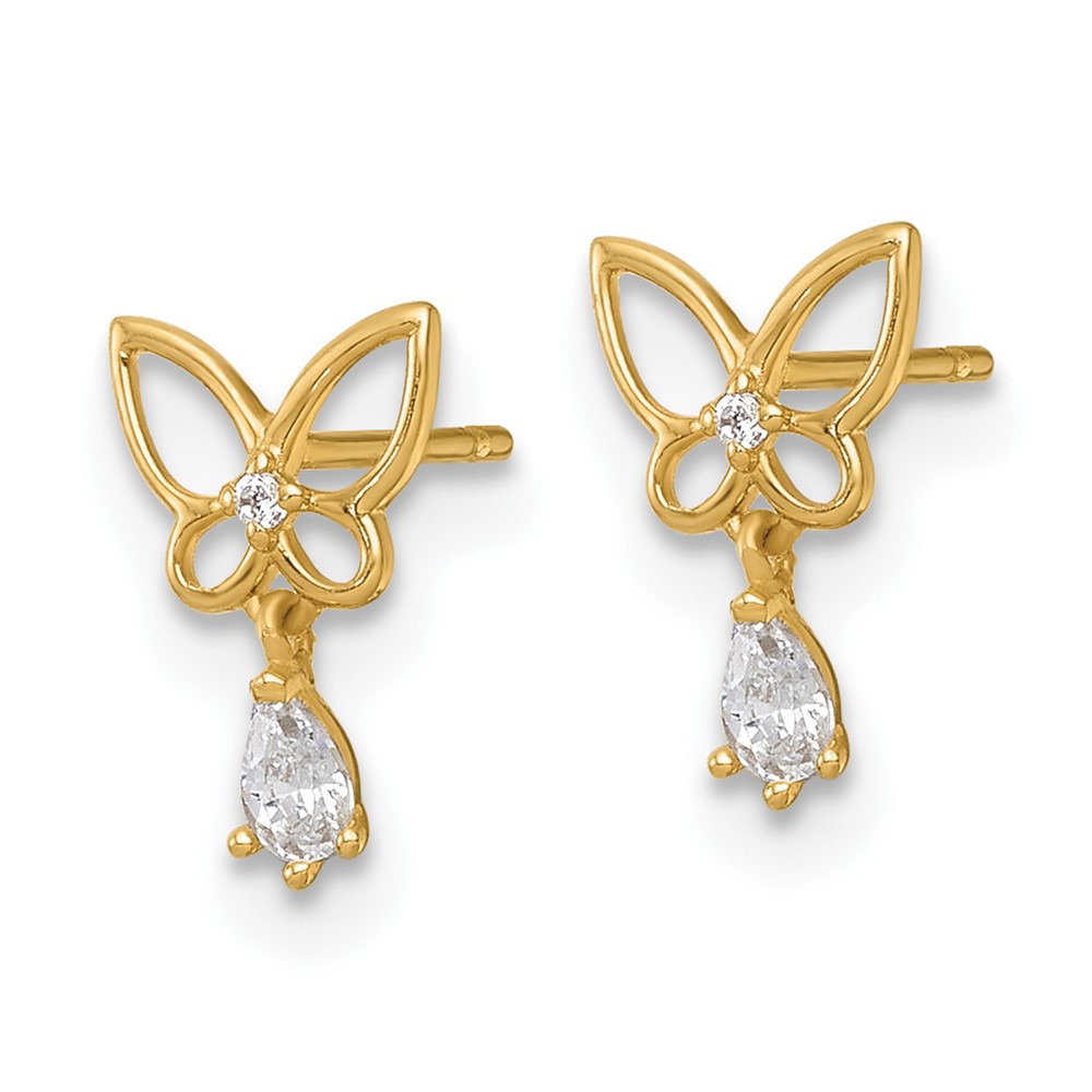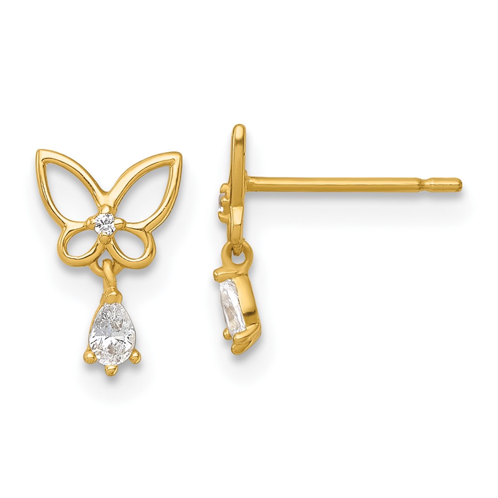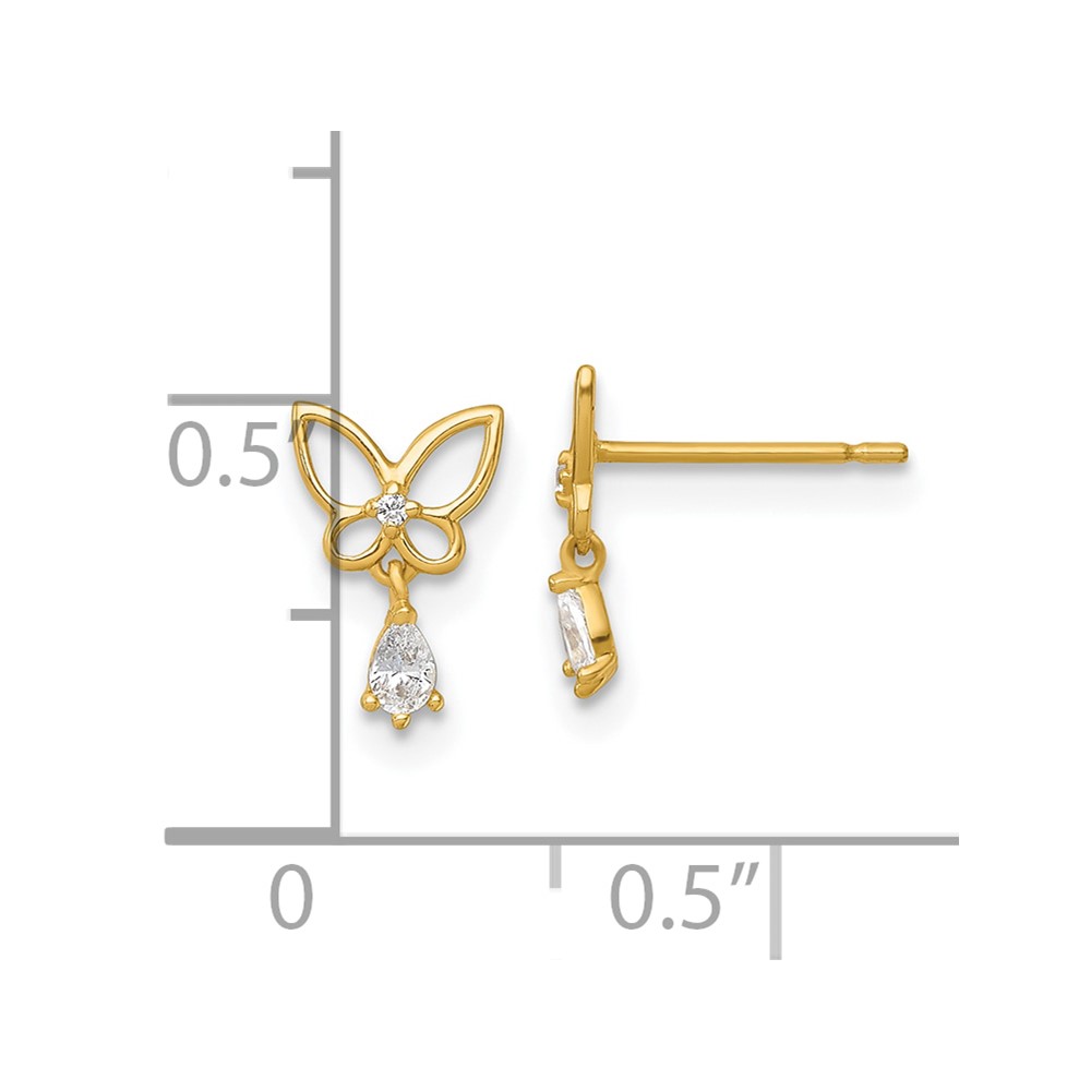 14k Madi K Polished Open Butterfly with CZ Dangle Childrens Post Earrings