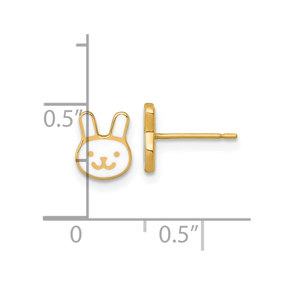14k Madi K Polished White Enameled Bunny Face Childrens Post Earrings