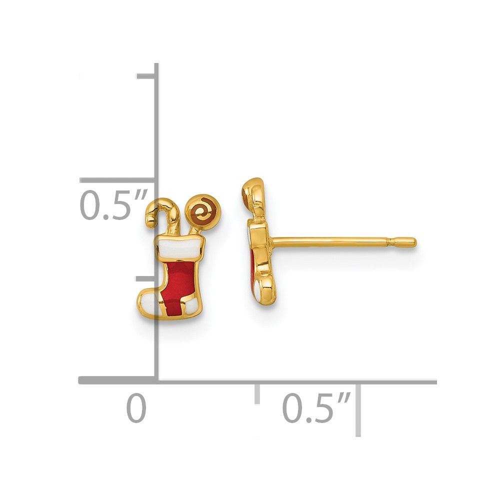 14k Madi K Polished Enameled Christmas Stocking with Candy Childrens Post Earrings