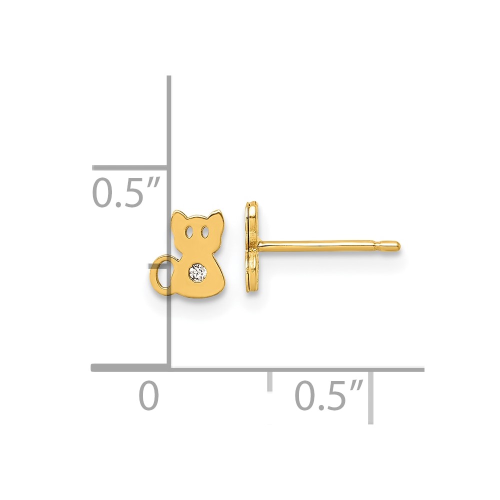 14K Polished CZ Cat Post Earrings