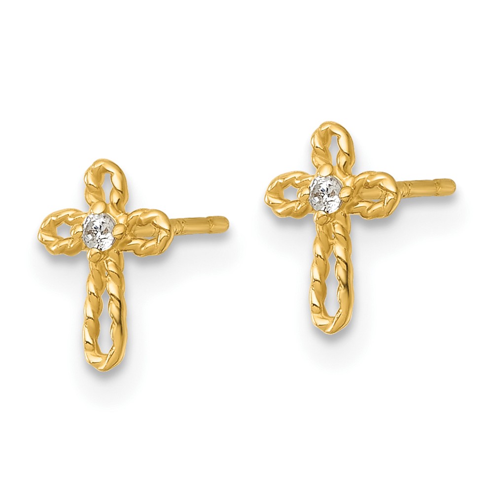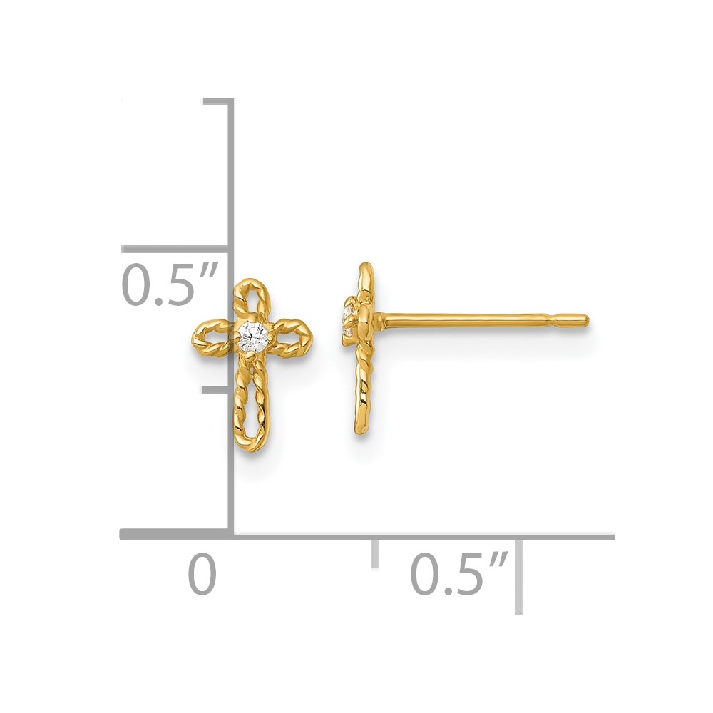 14k Madi K Polished and Twisted CZ Cross Childrens Post Earrings